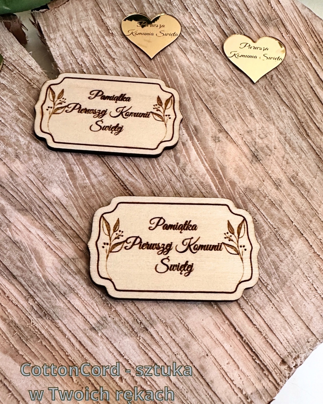 Мы предлагаем элегантную гравированную фанерную пластину, размером 6 x 4,5 см. Тарелка имеет тонкую раму золотистого плексигласа.