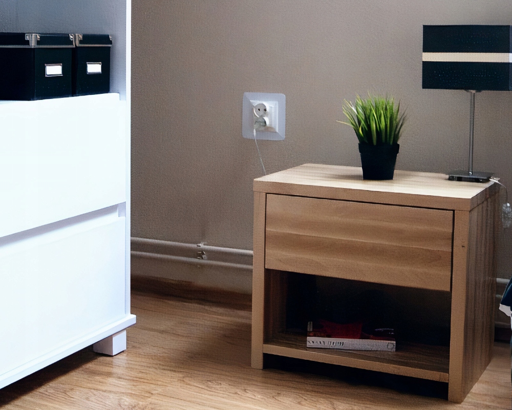 Деревянная прикроватная тумбочка полностью изготовлена из массива бука. Из ДВП выполнены только задняя стенка и днища ящиков.