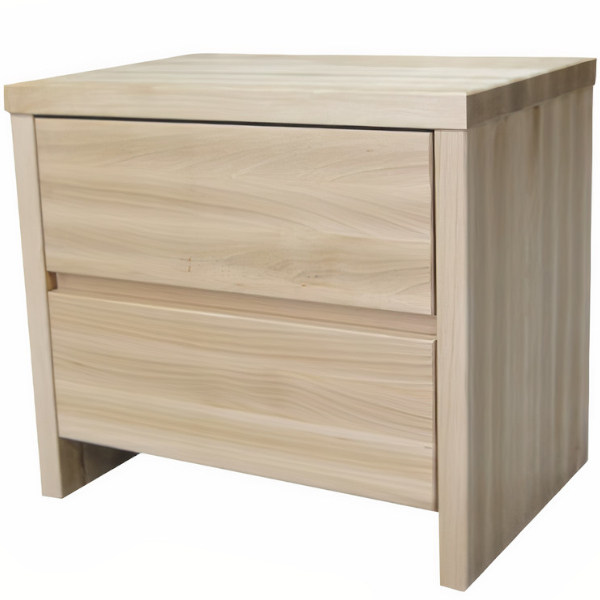 Деревянная прикроватная тумбочка полностью изготовлена из массива массива бука. Из ДВП выполнены только задняя стенка и днища ящиков.