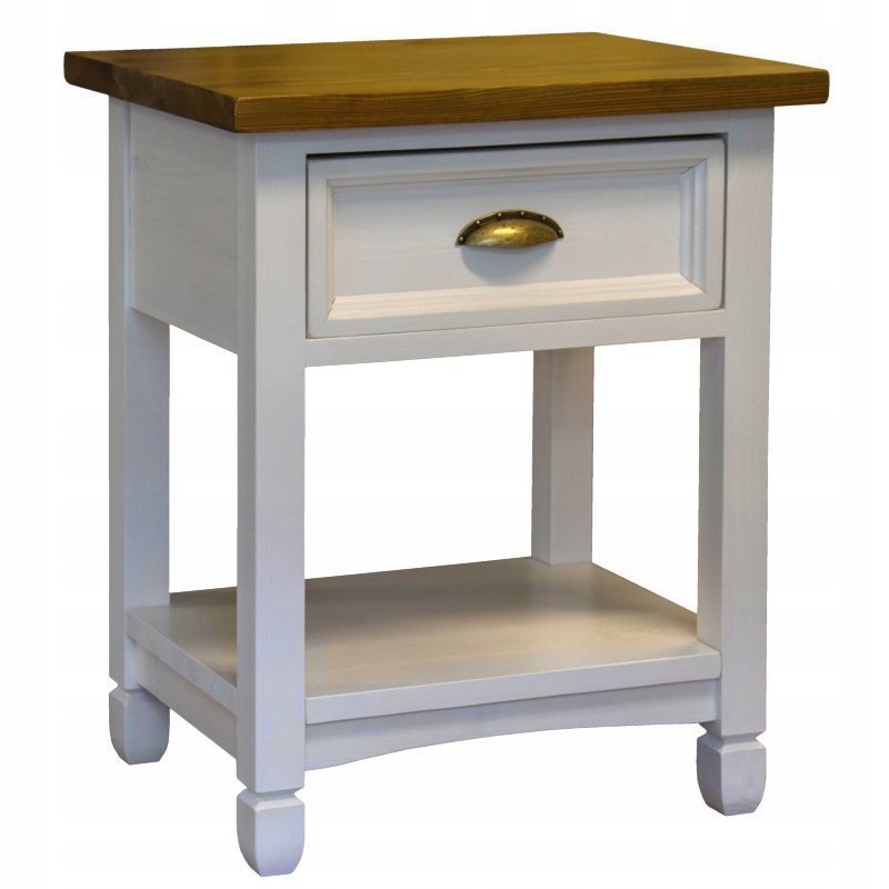 Красивая прикроватная тумбочка полностью изготовлена из массива сосны. Благодаря сочетанию классического деревенского стиля с современными цветами мебель становится одновременно очень современной.
