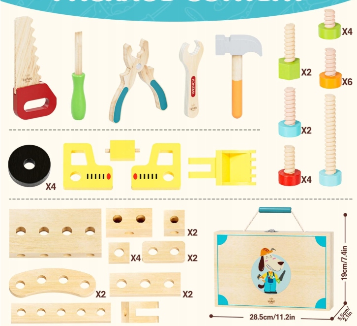 Практичный и красиво сделанный деревянный чемодан, полный мини-инструментов, которые позволяют детям играть роль маленького мастера. Это игрушка, которая не только развлекает, но и учит основным навыкам ручного труда, развивает творческие способности и самостоятельность.