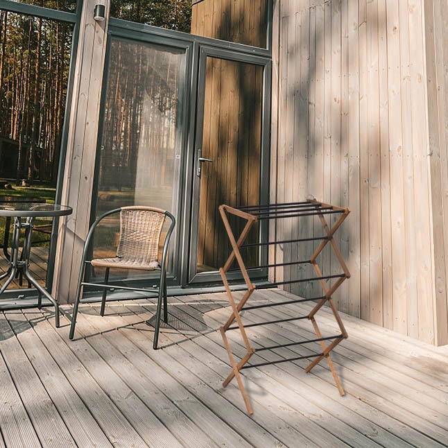 ✓ Деревянная сушилка, стоящая с черными стержнями, является отличным решением для людей, ищущих практические и эстетические способы сушить одежду в ограниченном пространстве. Design делает его идеально вписаться в современные интерьеры - как ванные комнаты, так и коммунальные комнаты или небольшие квартиры.