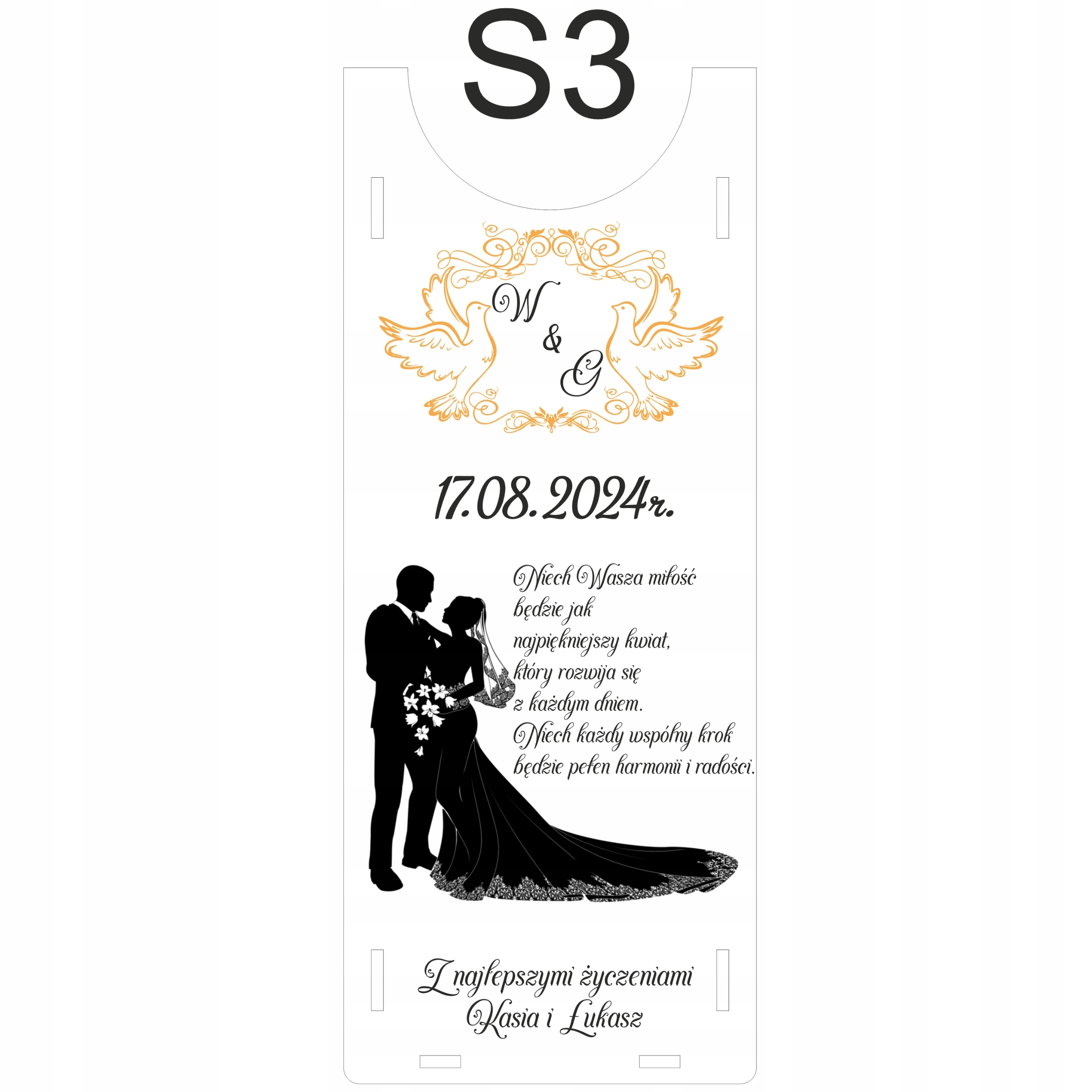 В информации продавцу или отправьте по электронной почте информацию, которая понадобится для персонализации выбранного вами дизайна, например: имена жениха и невесты, дата свадьбы, от кого это подарок.