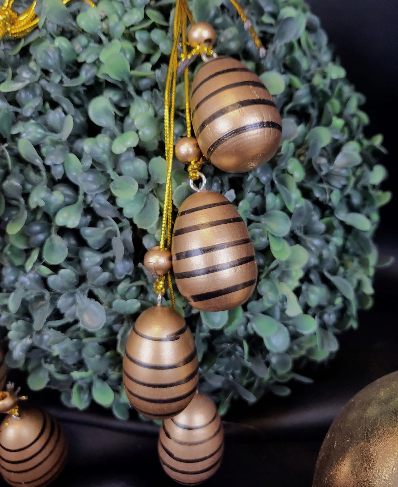 ДЕРЕВ'ЯНА ВІШАЛЬКА 4 ЯЙЦЯ В ЗОЛОТУ СМУЖКУ