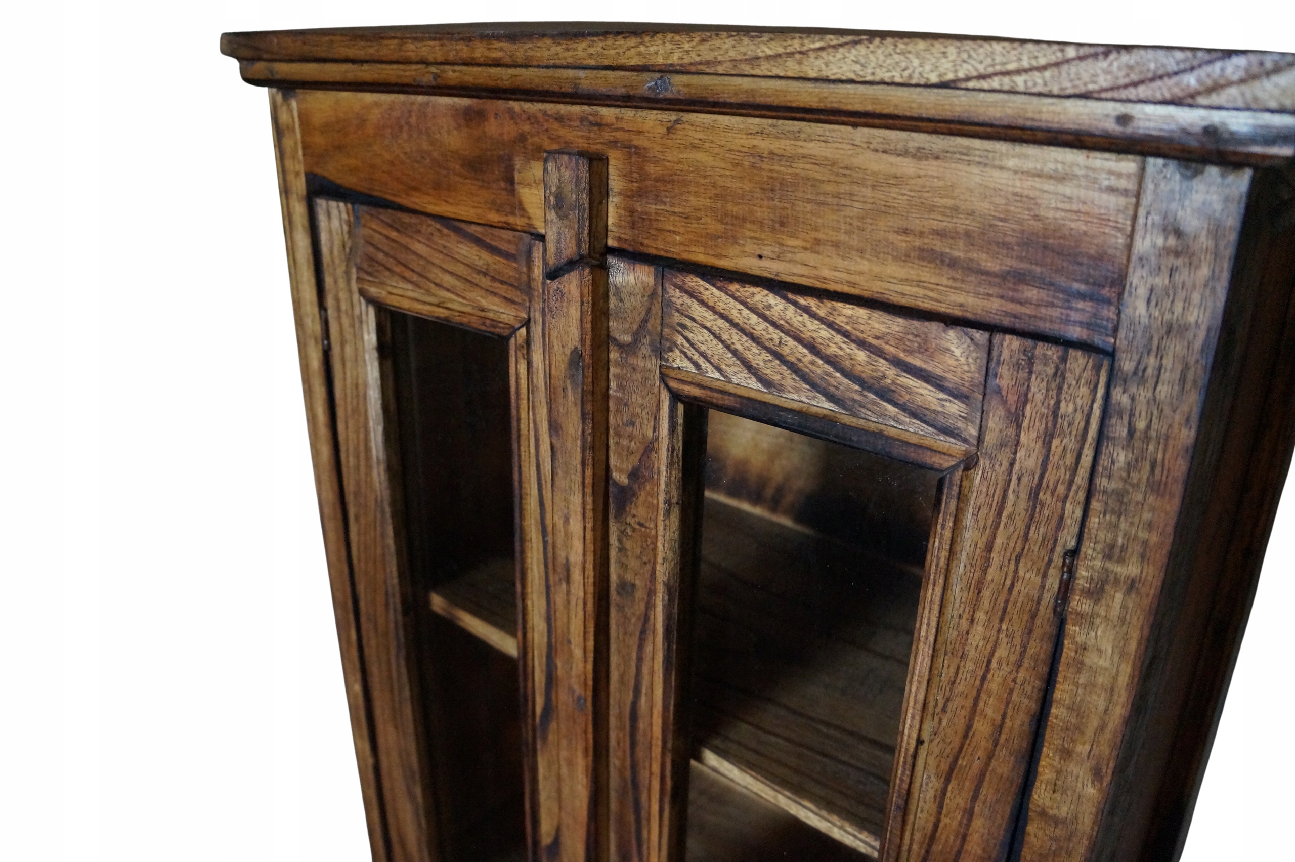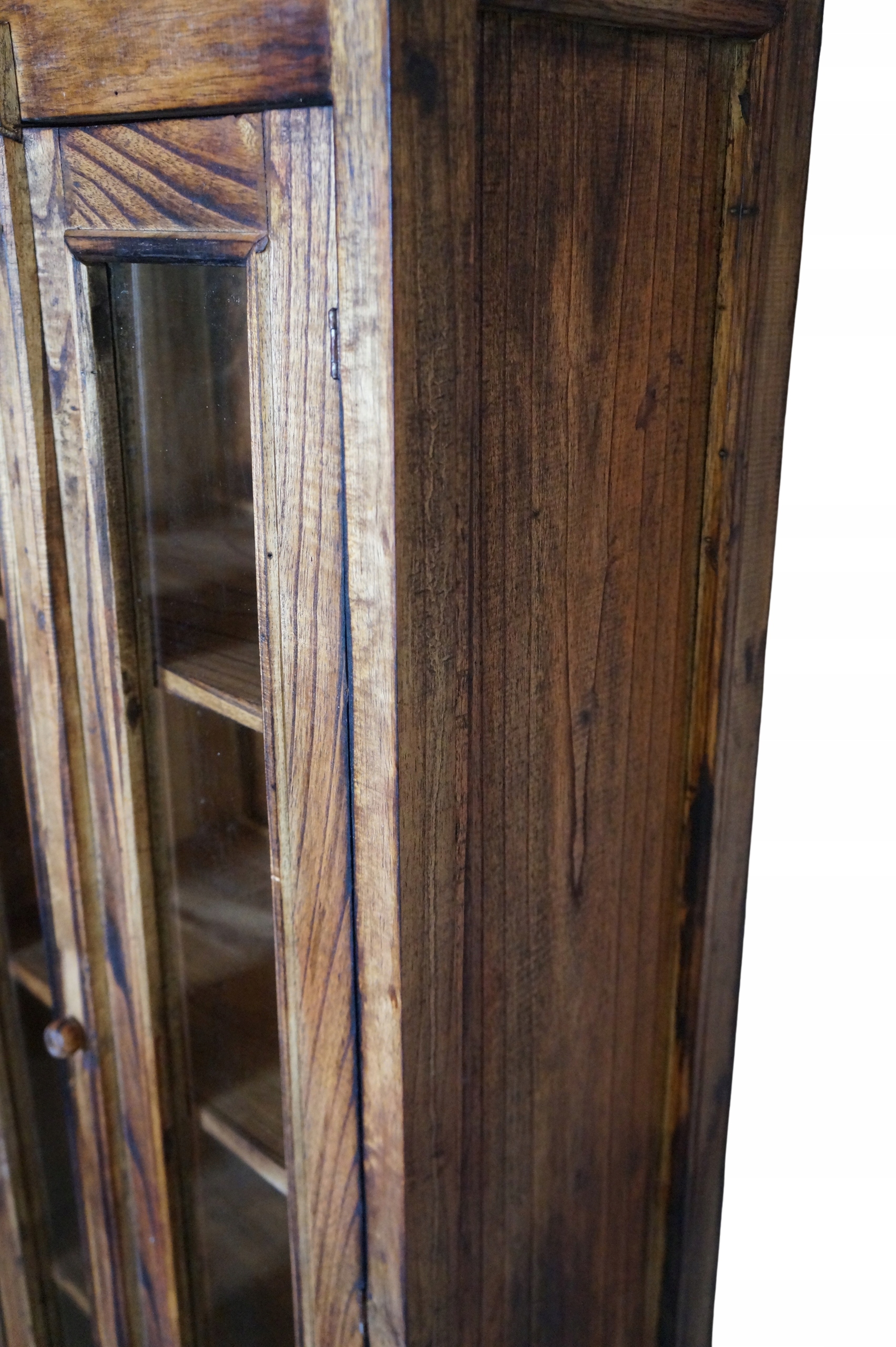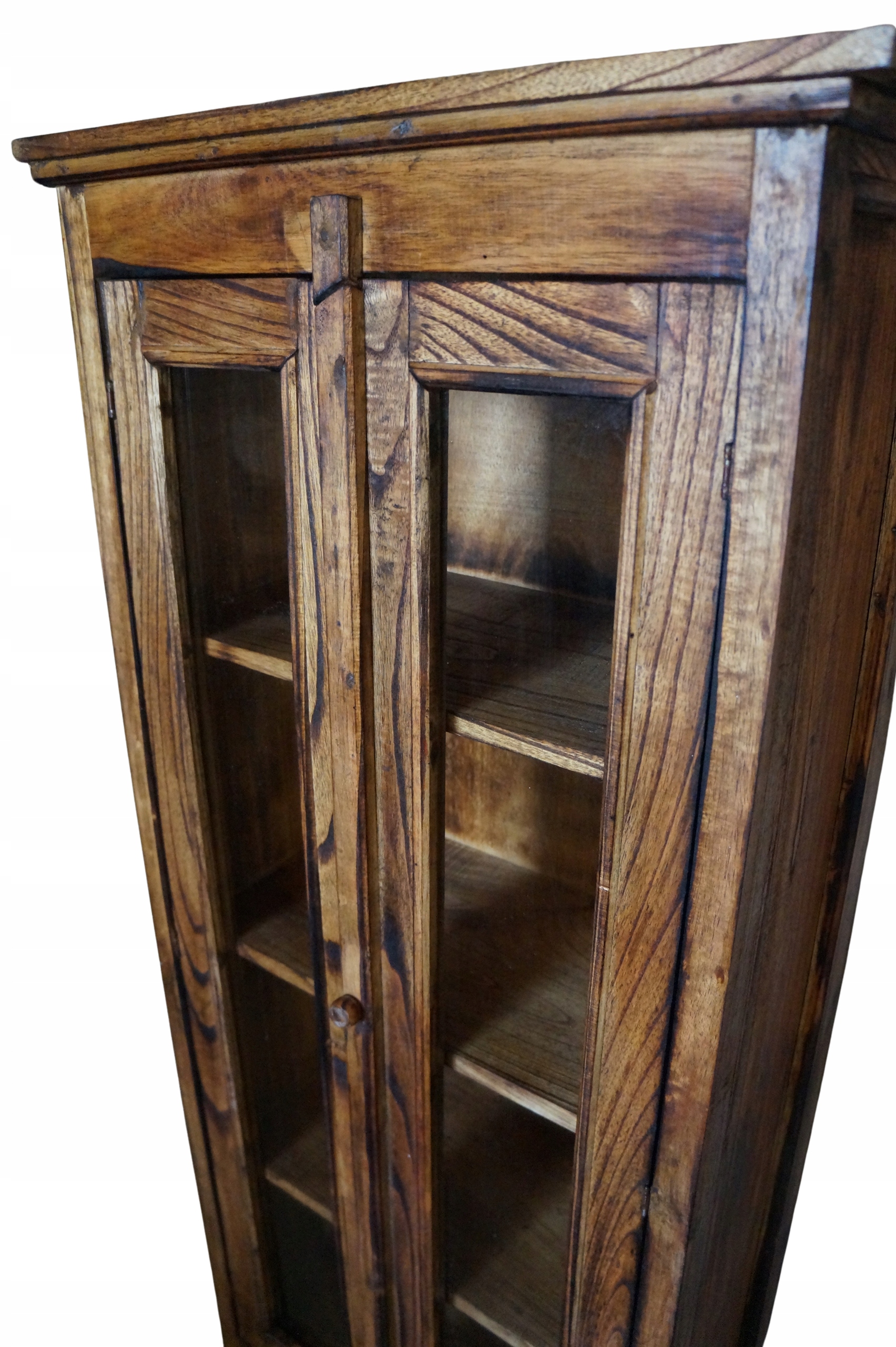 Витрина изготовлена из местной экзотической древесины Джемпинис с острова Бали. Имеет два выдвижных ящика, открывающиеся стеклянные дверцы и полки. Ящик без направляющих. Мебель выполнена в винтажном стиле, состаренная.