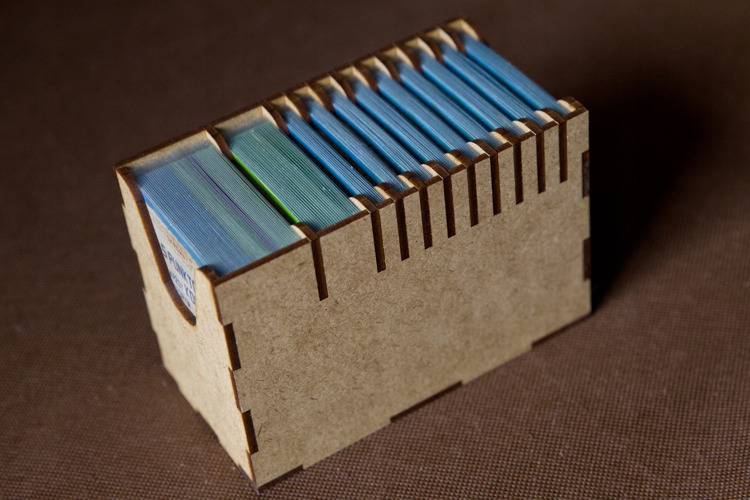 Второй карточный контейнер содержит 11 камер с проставками для отдельного разделения: набор семейных карт, набор сольных карт и 9 наборов карт урока.