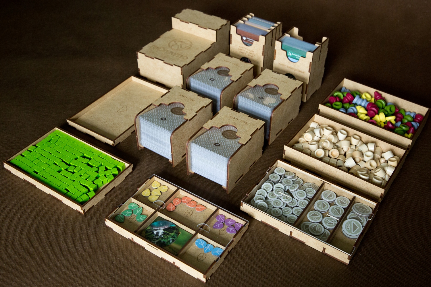 - 3 контейнера/подносы - для токенов почвы, маркеров роста (стволы и короны).