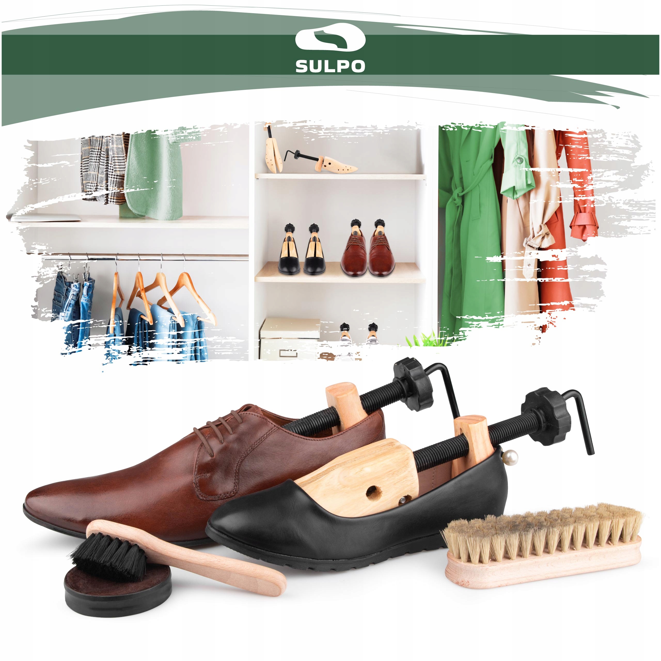 Большая обувная колодка работает по всей длине и ширине обуви, помогая сохранять ее форму и повышая комфорт. Доска меньшего размера точно растягивает выбранные области, например. на пальцах или лодыжках. Набор обеспечивает комплексный уход и корректировку повседневной, официальной и женской обуви на каблуке.