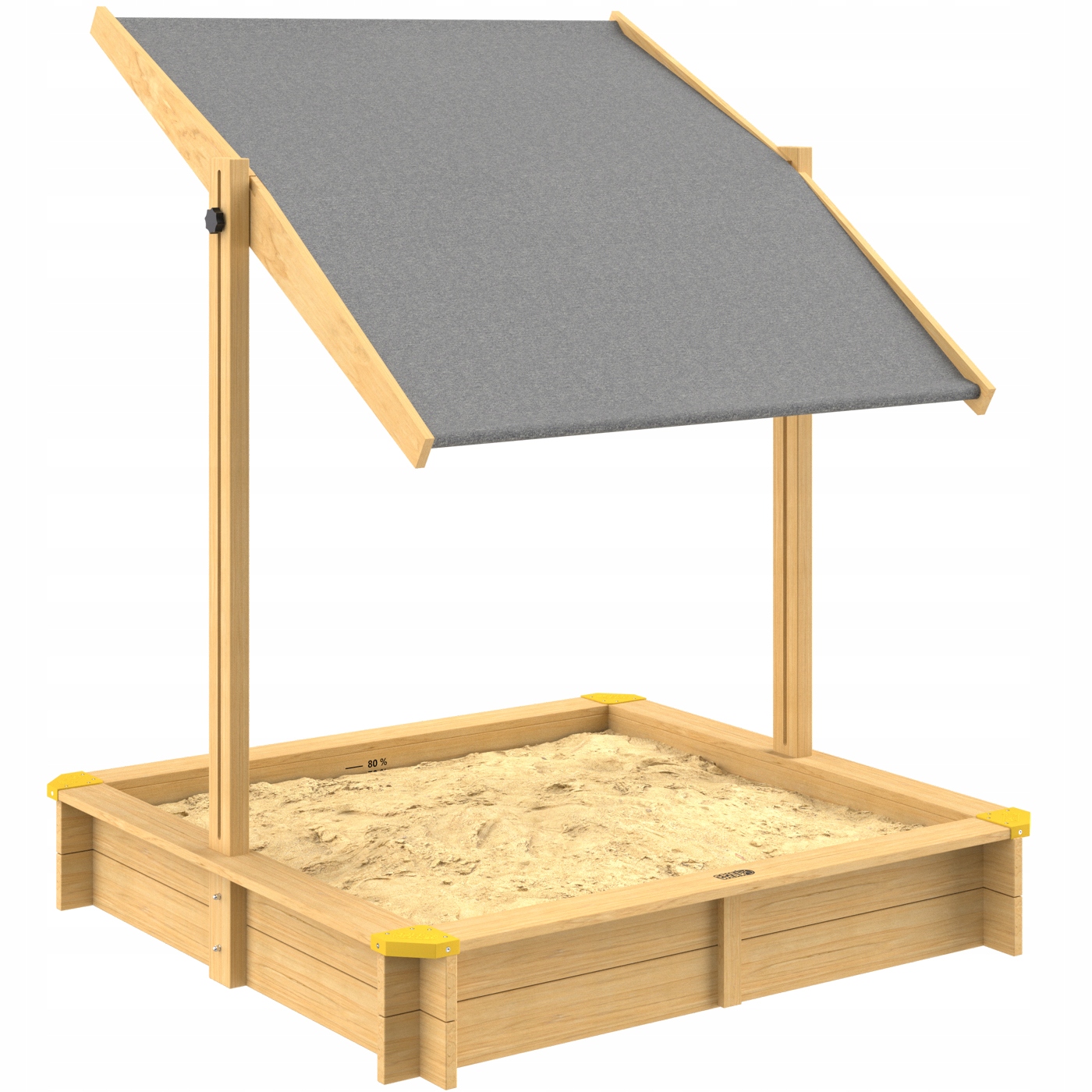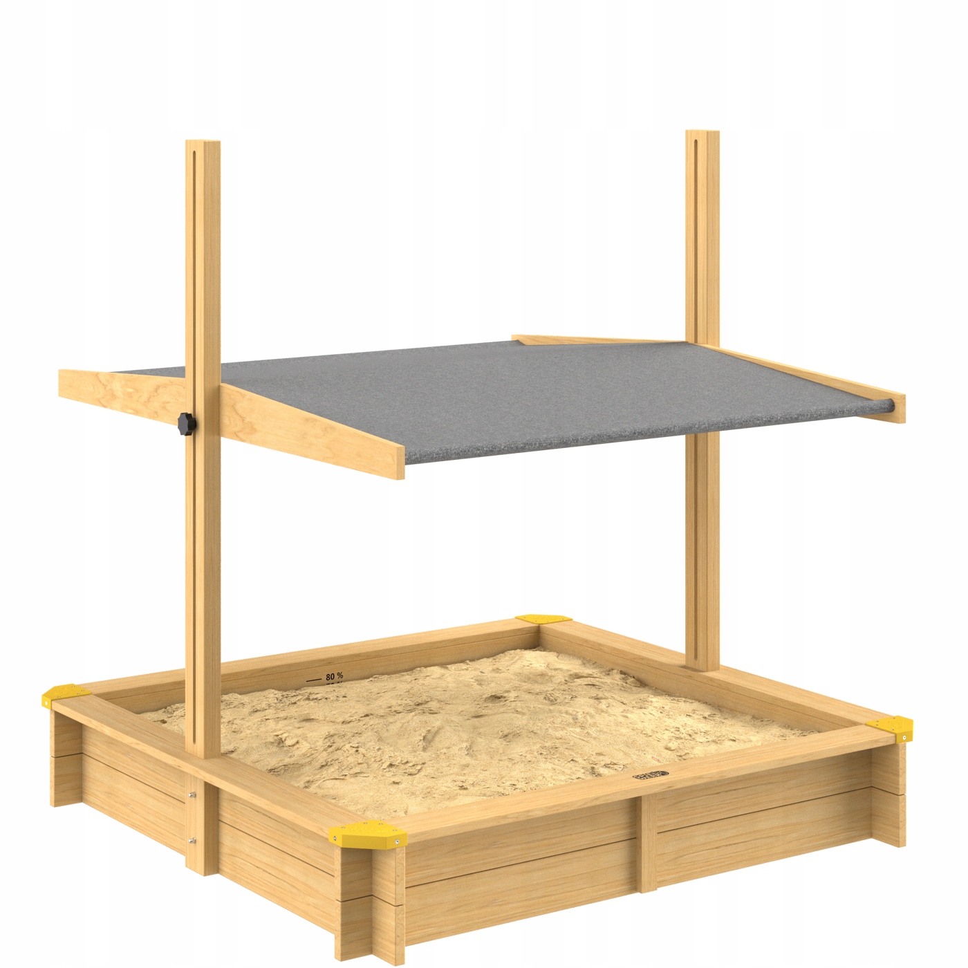 Песочница имеет наклонную крышу с регулировкой высоты - ваш ребенок будет в восторге.
