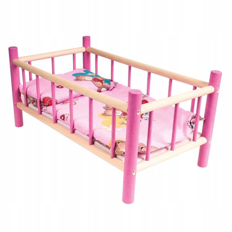 Деревянная кукольная кроватка с одеялом и подушкой. Краски, используемые для рисования кроватки, полностью безопасны, посвящены детям. Ткань