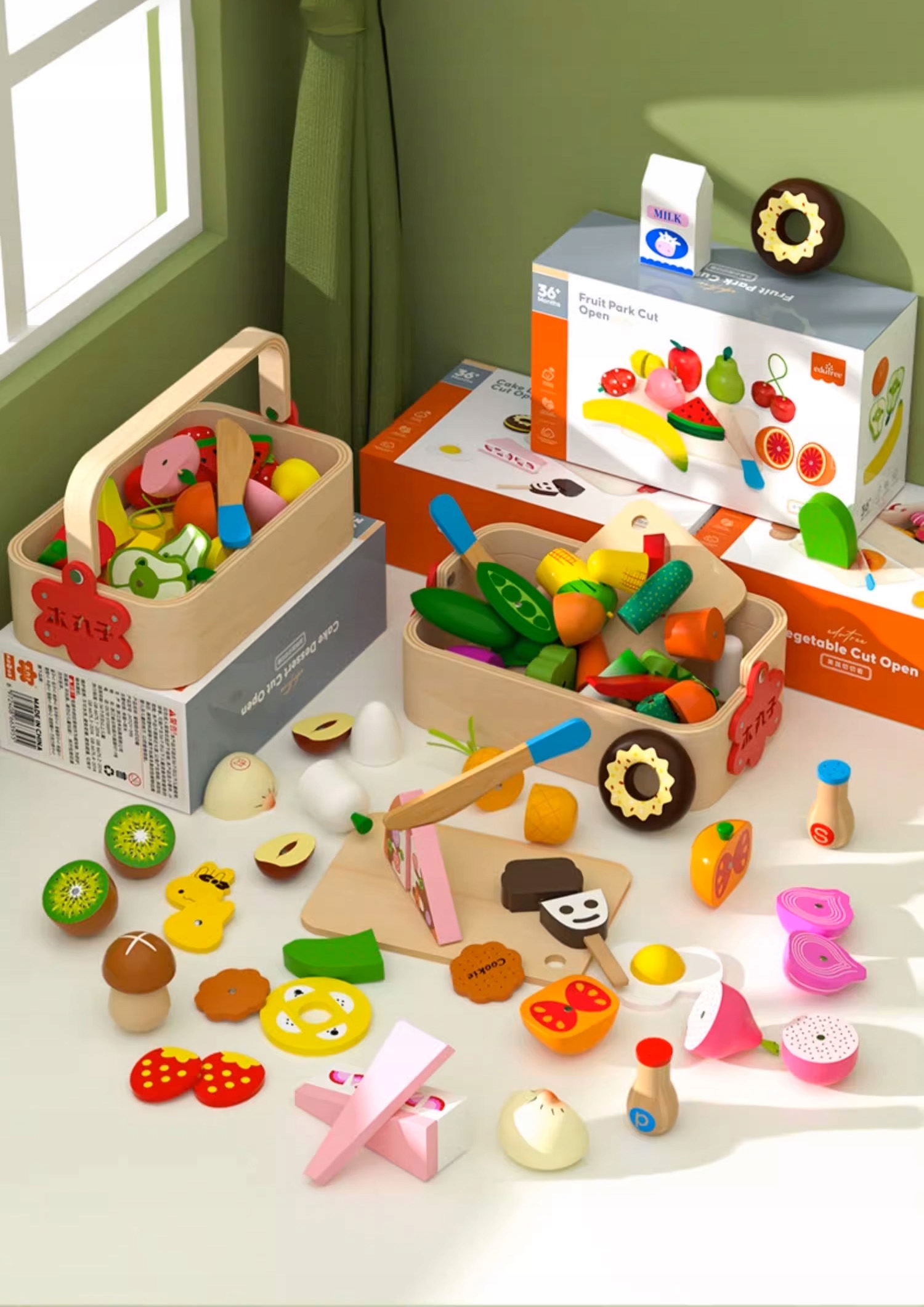 <р>1. Реалистичный внешний вид. Продукты для завтрака и печенье в наборе выглядят настоящими, поэтому ваш ребенок сможет имитировать режущие движения и научиться распознавать различные формы и цвета. <р>2. Безопасные и прочные материалы:Набор изготовлен из массива дерева, что обеспечивает долговечность и безопасную игру.3. Магниты. Каждая деталь снабжена магнитами, которые помогают удерживать детали вместе во время резки, обеспечивая более реалистичную игру.