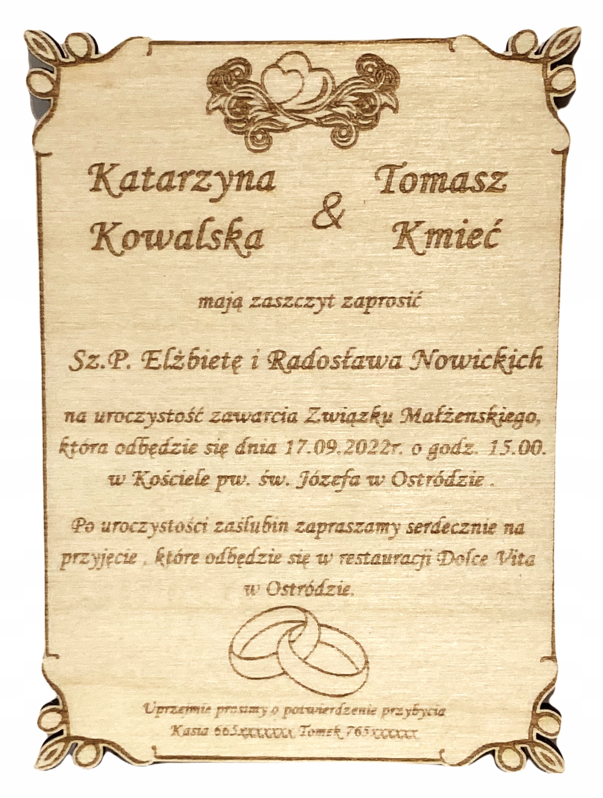 ДЕРЕВ'ЯНЕ ВЕСІЛЬНЕ ЗАПРОШЕННЯ З ГРАВІЮВАННЯМ