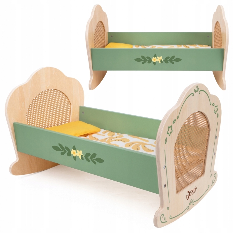 Эта очаровательная колыбель в оттенках зеленого цвета сочетает в себе вечное очарование винтажного стиля с естественной красотой плетения ротанга. Классические детали и приглушенные цвета делают его идеальным дополнением к веселью каждого детей дома, ухода за куклами или плюшевыми медведями. Тонкие украшения придают ему уникальный характер, а мягкий набор постельных принадлежностей делает куклу комфортно.