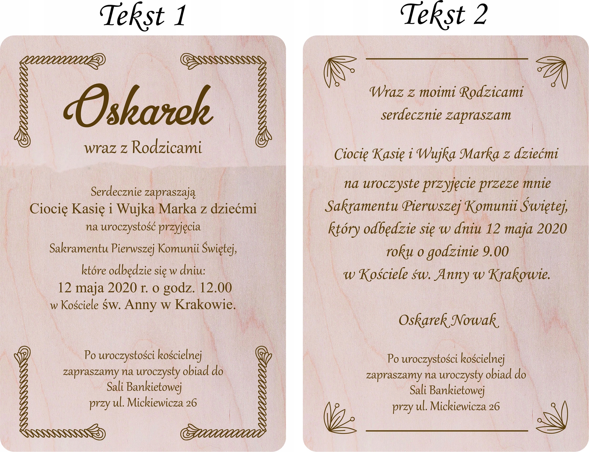 Деревянное приглашение к первому причастию