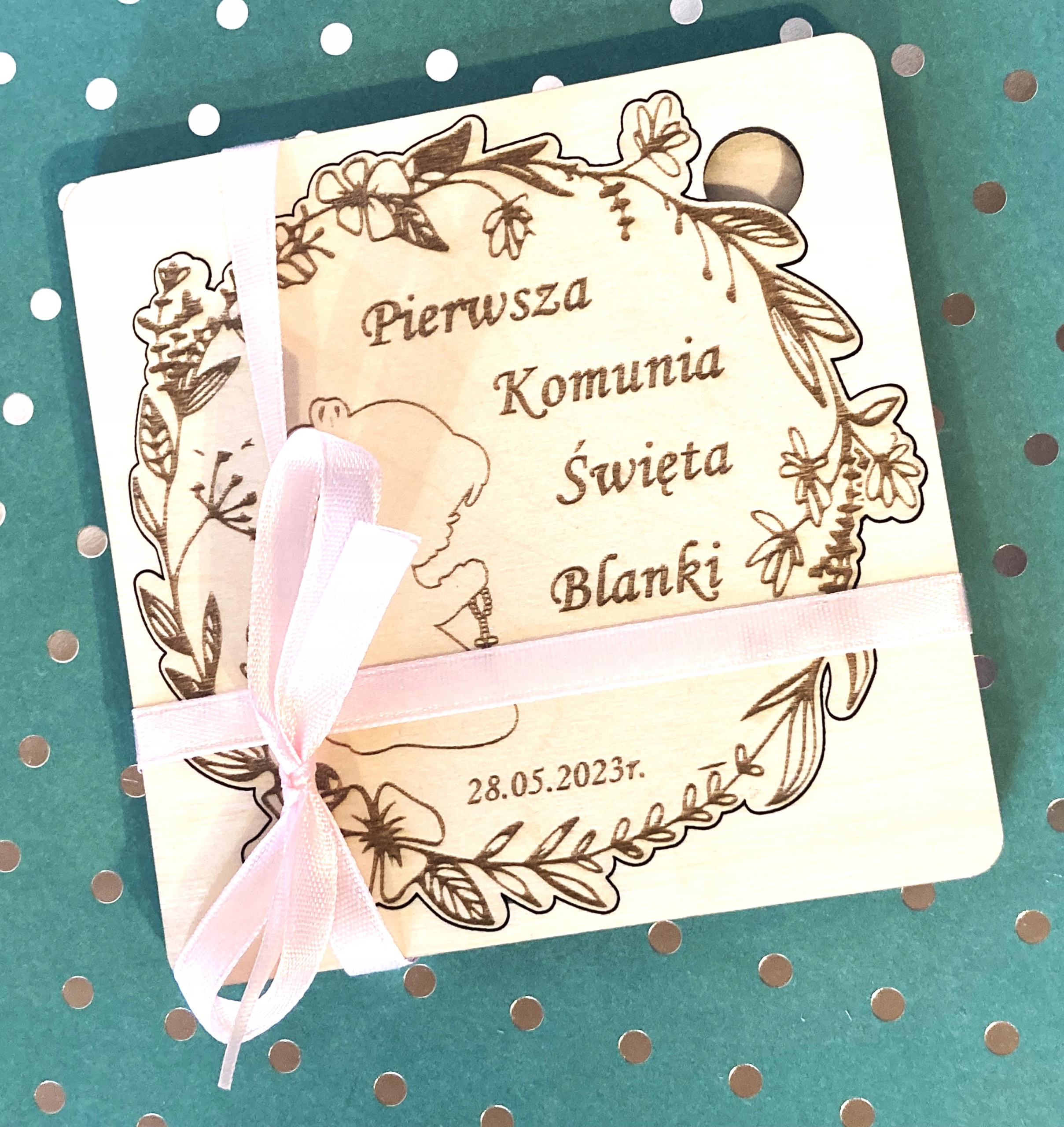 ДЕРЕВ'ЯНЕ ЗАПРОШЕННЯ НА ПРИЧАСТЯ ДІВЧИНКИ