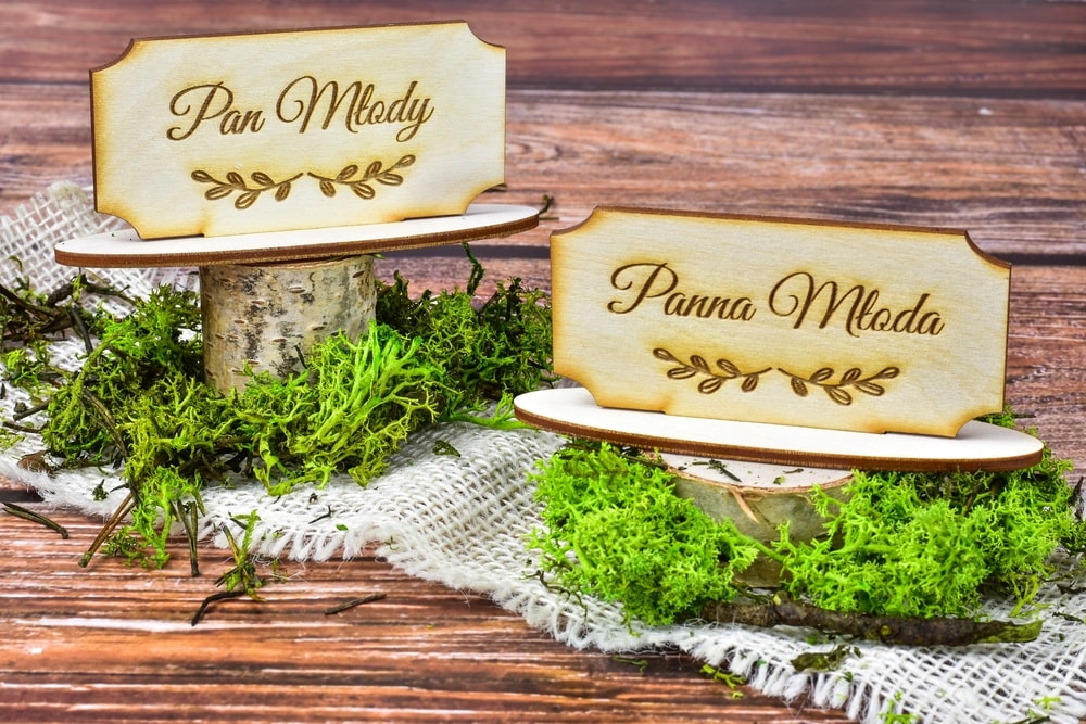 Деревянные подвески с гравировкой – это очень стильное, прочное и привлекательное, практичное украшение свадебного стола. Они идеально вписываются в большинство свадебных стилей, особенно в рустикальный стиль или стиль бохо. В отличие от бумажных подвесок, они характеризуются долговечностью, устойчивостью и являются гораздо более шикарным решением.