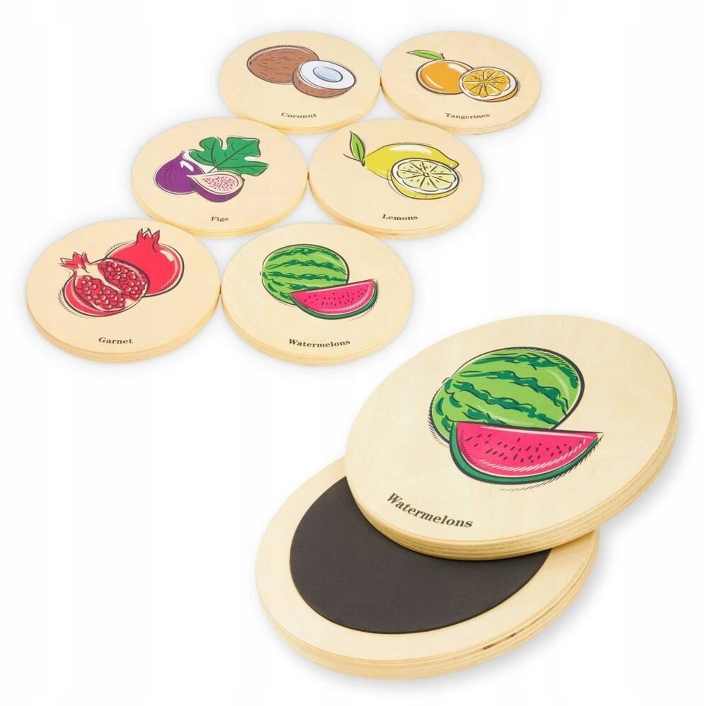 - Деревянная плитка b>с красивыми, красочными иллюстрациями фруктовс их английскими названиями