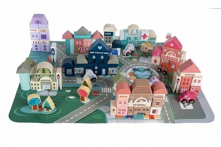 Деревянные городские кубики долговечны — поэтому нет опасений, как в случае с пластиковыми игрушками, что поврежденный элемент случайно поранит ребенка. Набор городских кварталов – это не только отличное развлечение, но и приобретение знаний об окружающем нас мире, принципах функционирования города и т. д.