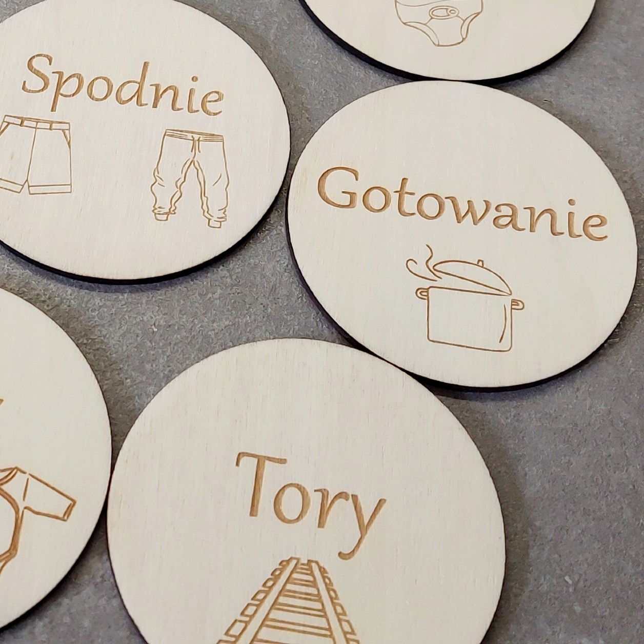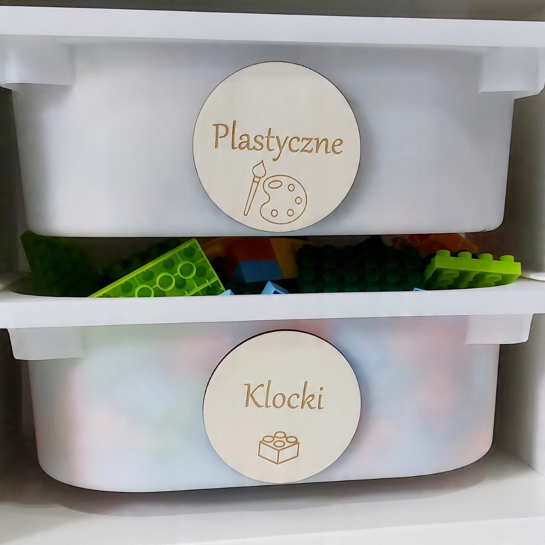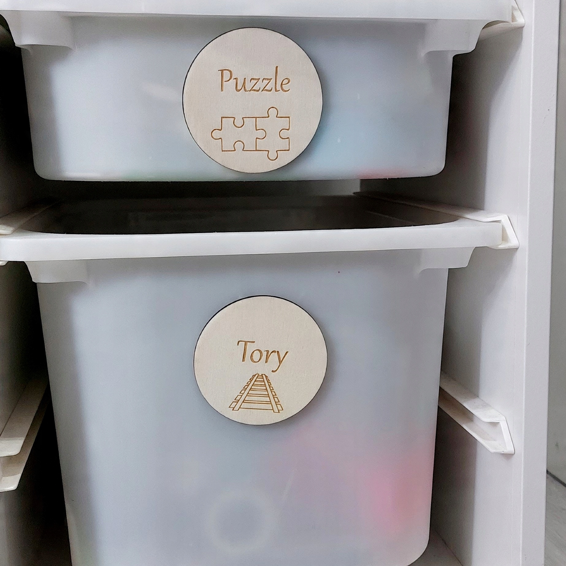 Деревянные диски/этикетки/таблички/маркировка для коробок ikea Trofast, Kallax и многого другого. Они будут хорошо смотреться на любой коробке/комоде/мебели. Идеально подойдет в детскую комнату для одежды или игрушек.