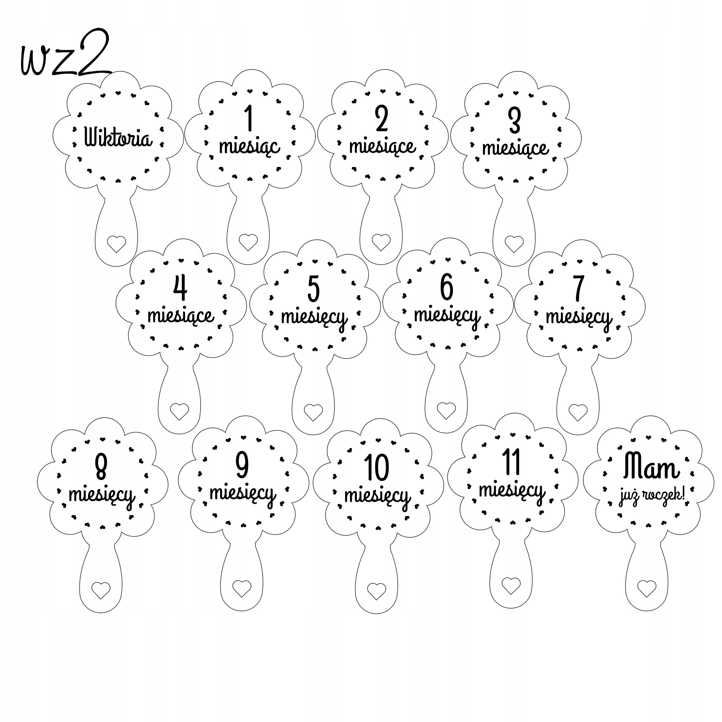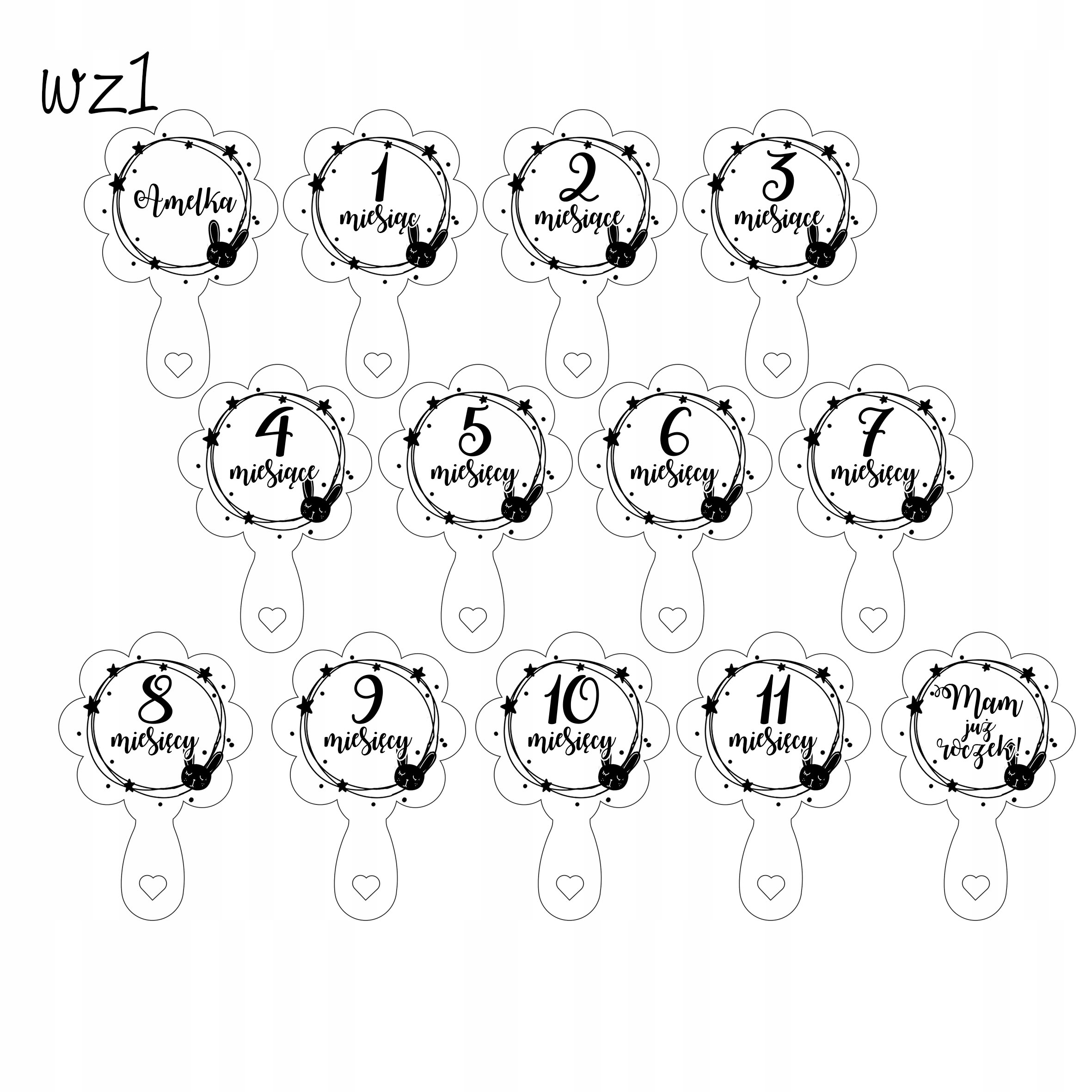 Деревянные таблички в виде погремушек для фотографий с месяцами, благодаря которым вы увековечите на фотографиях первые 12 месяцев вашего малыша.