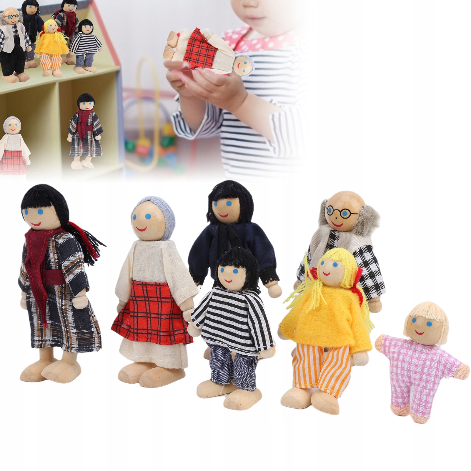 Семейные статуэтки для сосны Миниатюрные люди набор игрушек. Деревянные гибкие куклы веселые семьи, дети, родители 3+