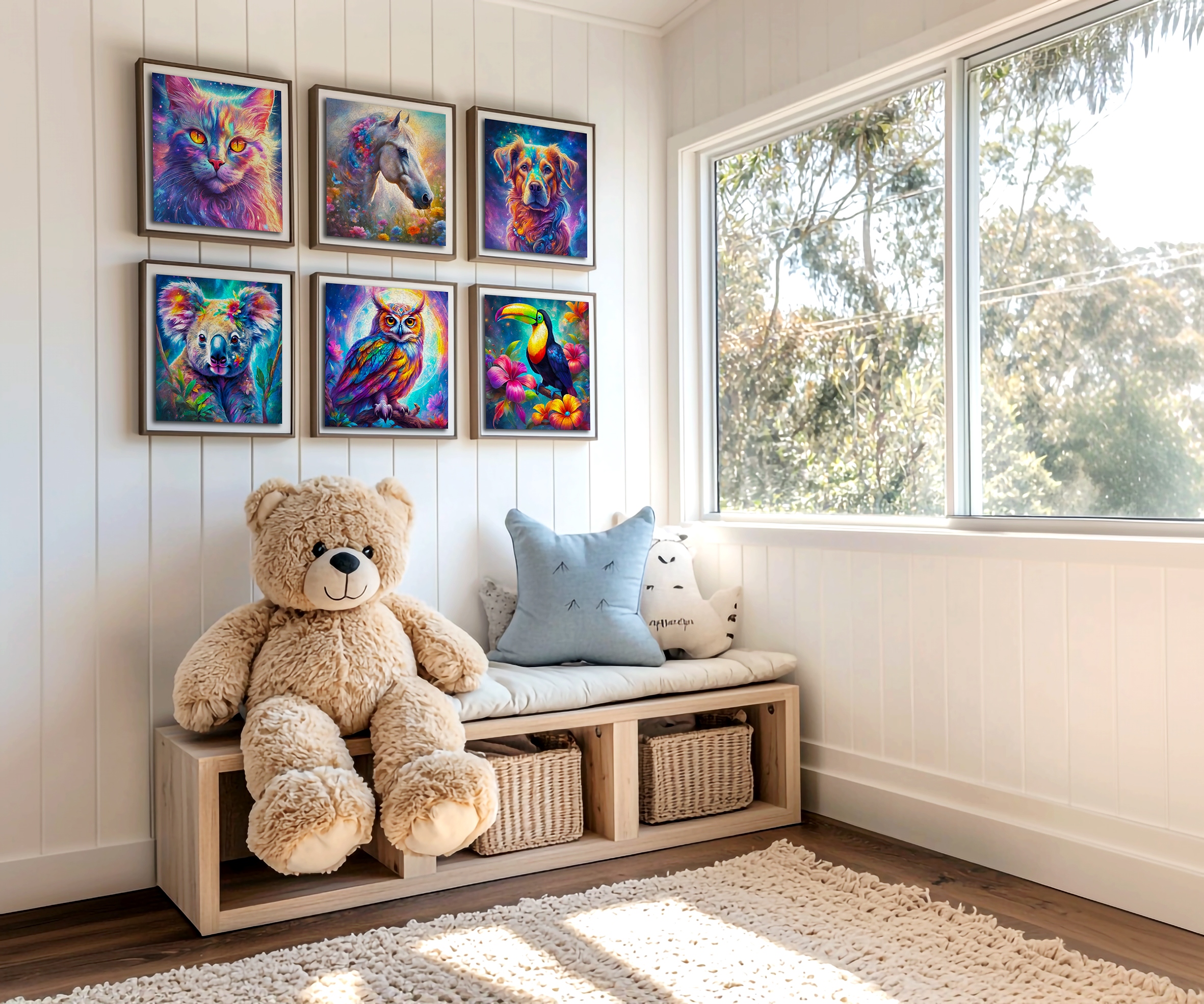 Устройте несколько различных дизайнов, рамки с кадрами и создайте красочное, уникальное украшение. Головоломки отлично смотрятся на стене и дают интерьеру теплую, уютную атмосферу.