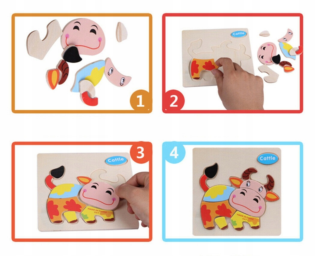 - ЦВЕТНАЯ - пазлы выполнены в ярких цветах, что побуждает детей играть. Кроме того, он выполняет еще и образовательную функцию. Ваш малыш научится называть животных и цвета.