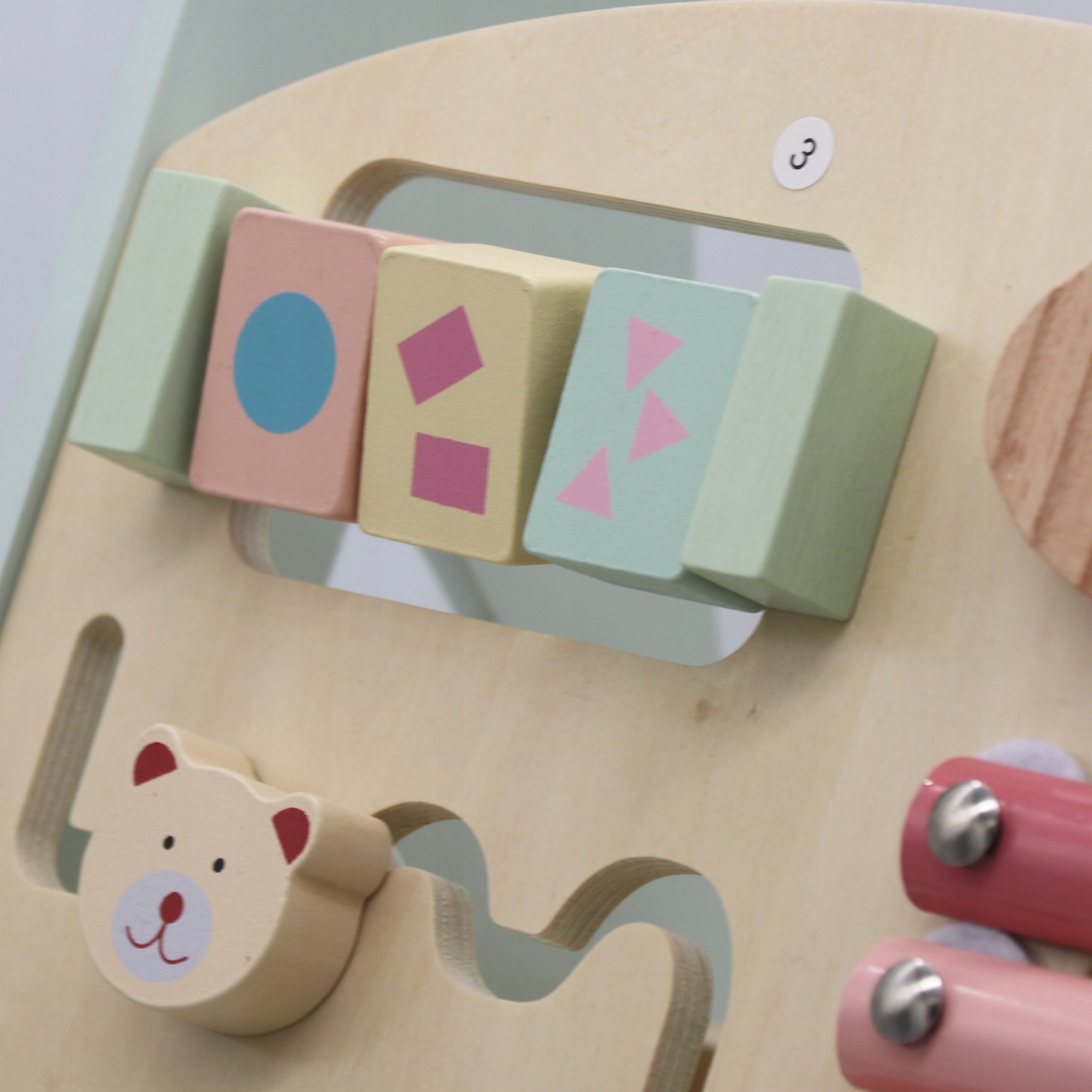 На передней стенке ходунков имеются различные элементы, положительно влияющие на развитие ребенка:
