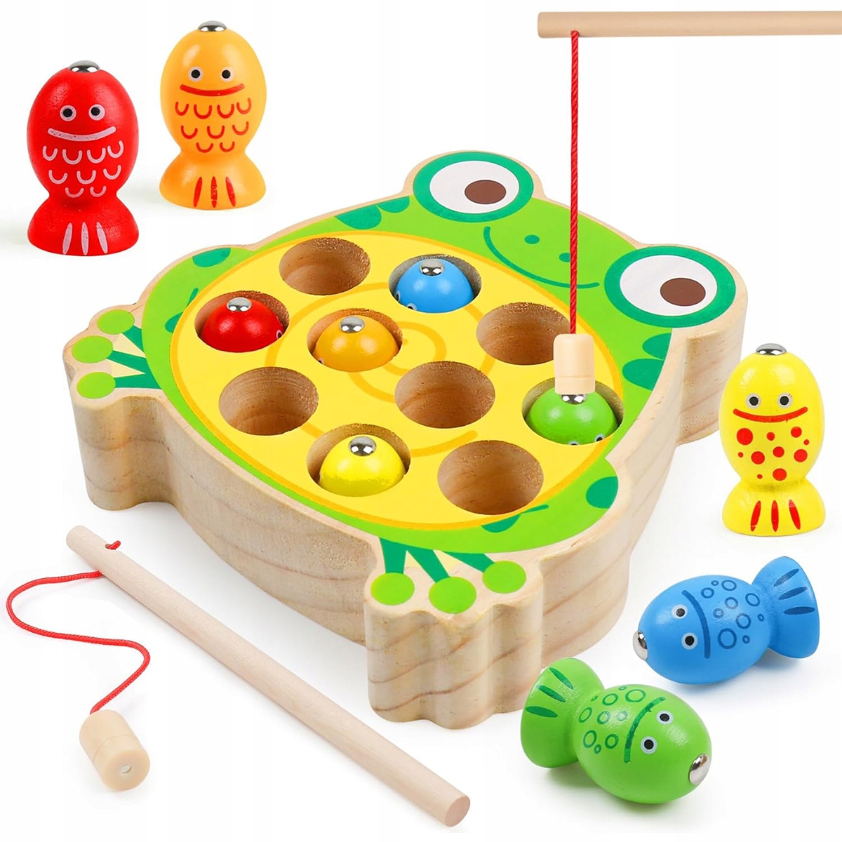 Интерактивная игра. В этот деревянный набор игрушек Монтессори входят две магнитные удочки и 10 магнитных рыбок на красивой прочной деревянной основе в форме лягушки, что позволяет детям участвовать в интерактивных и веселых играх.