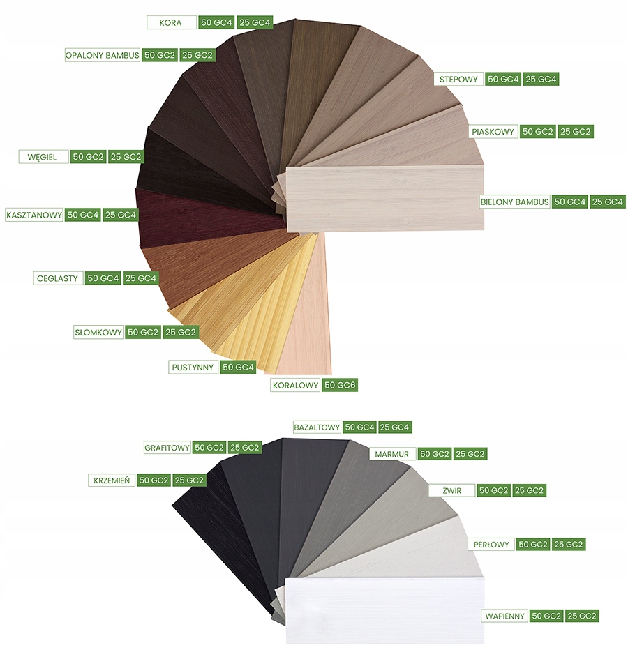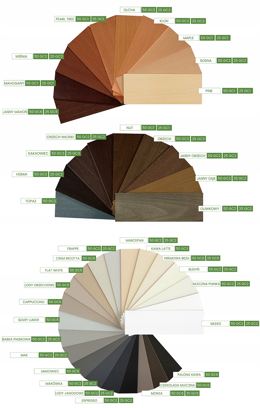 Коллекция деревянных ламеллов, которые отражают самые популярные оттенки дерева в наших домах. Теперь вы можете идеально соответствовать жалюзи с рамами окон в цвете ореха или на кухне в оттенке золотого дуба. И палитра теплых оттенков, и холодный, смешанный с серо -белым, имеют видимые деревянные банки. Ламели окрашены или вининов.