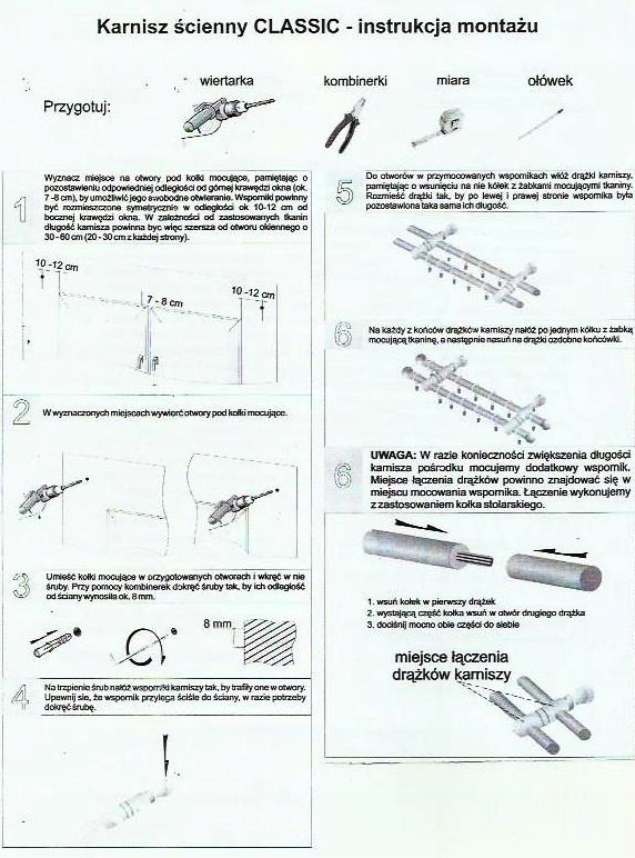 - После установки карниза в варианте с настенными кронштейнами расстояниепервого карниза от стены ок. 9 см, а второго ок. 15 см;