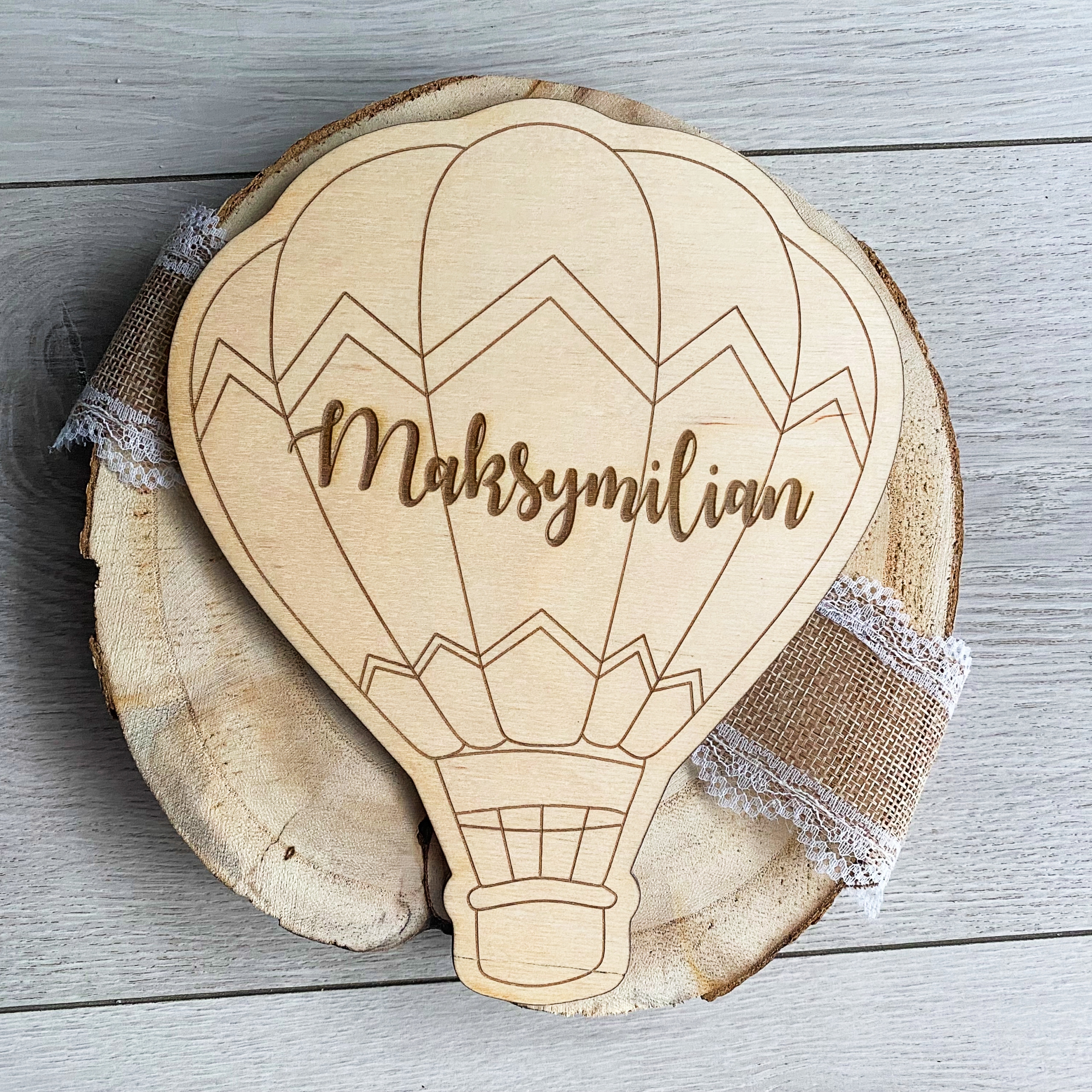 - 1 шт. Большой деревянный воздушный шар (с любым содержанием/именем) с размерами: ок. 20 см х 16 см