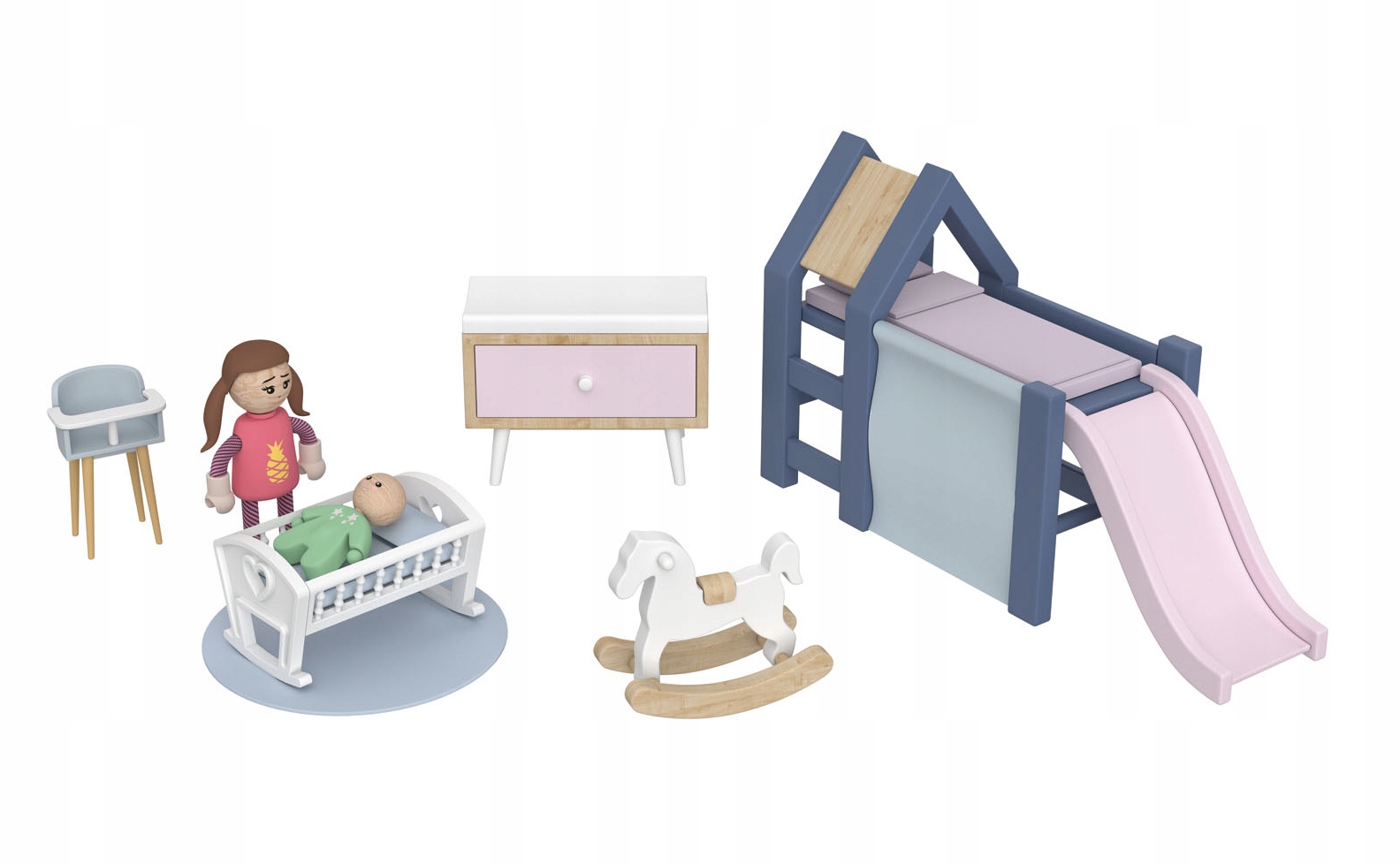 Возможность соединения с другими наборами с домиками для игривых кукол Младший Многие детали, такие как качалка, кроватка со слайдом и многие другие 15 Элементы