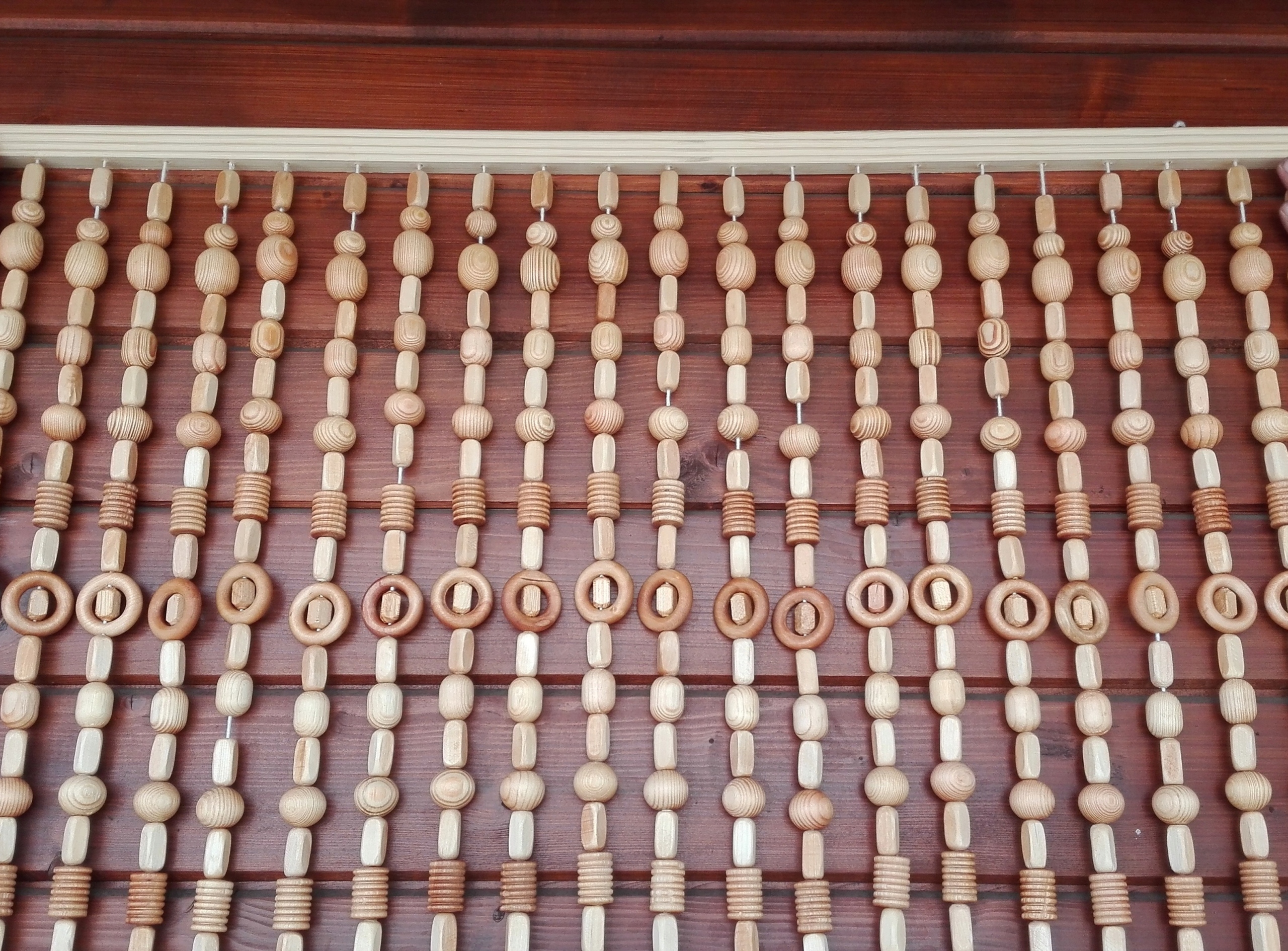 - Занавес сделана из деревянных бусин, покрытых лаком.