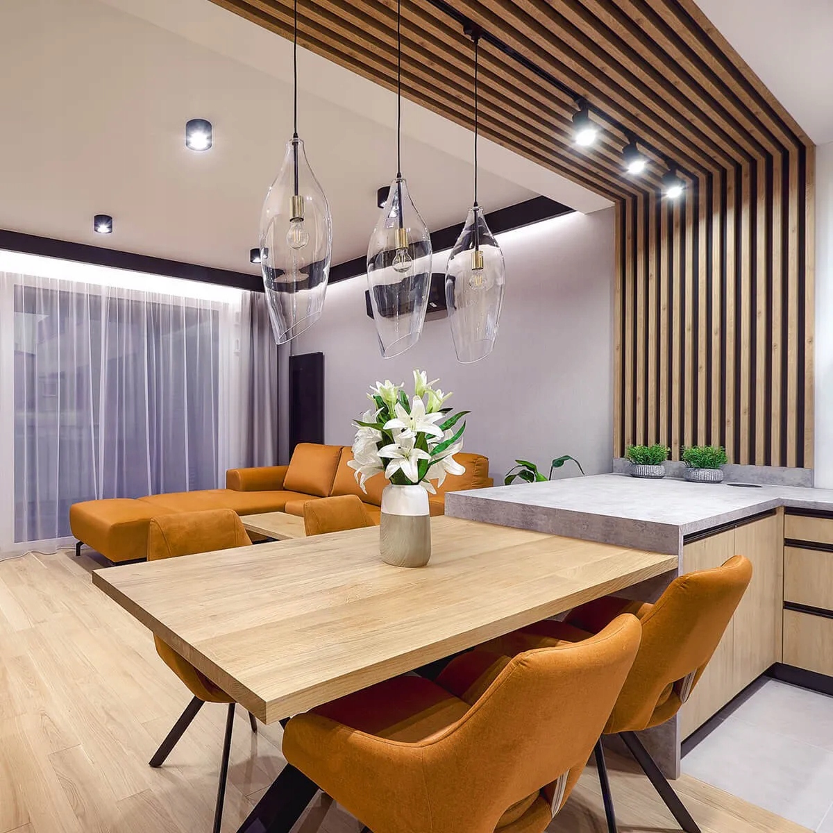 Предлагаемые нами одиночные ламели и готовые панели идеально вписываются в современные тенденции декоративного дизайна. Кроме того, они обладают хорошими тепловыми и акустическими свойствами и просты в установке.