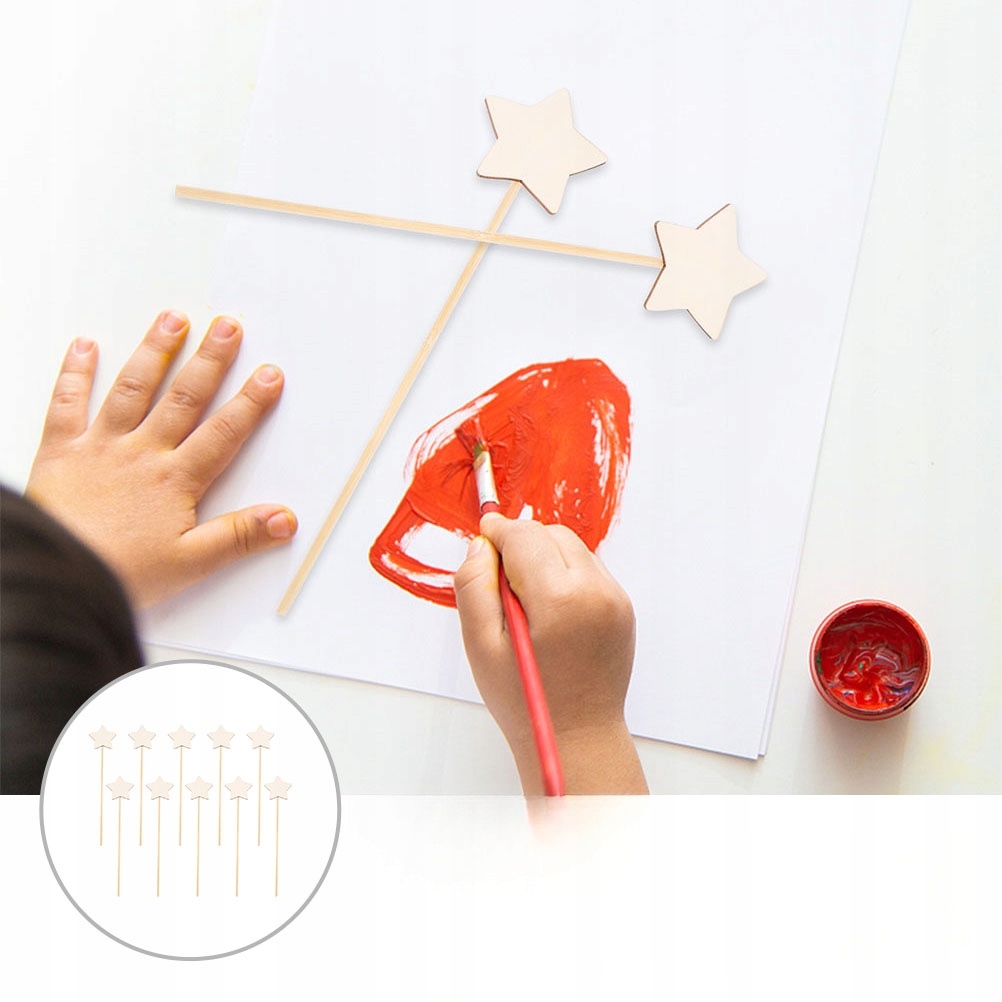10 ШТ. НЕОКРАШЕННЫЕ ДЕРЕВЯННЫЕ ПАЛОЧКИ ФЕЙ СО ЗВЕЗДОЙ ДЛЯ УКРАШЕНИЯ