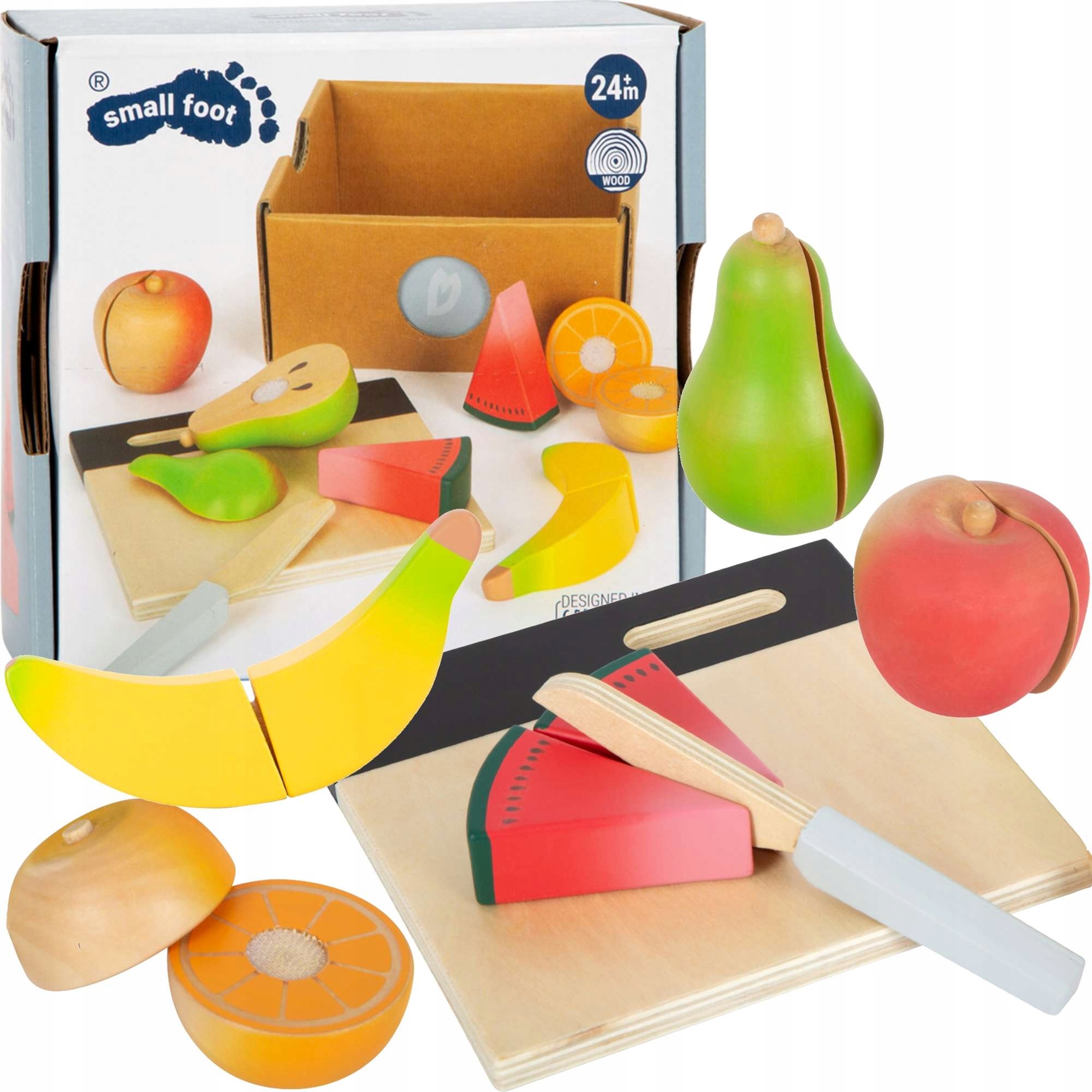 Фрукты разделены на половину и , соединенные с помощью липучков , благодаря которой вы можете подражать процессу разрезания, а также иметь естественный вид и украшенные множеством деталей. Его верхняя часть может быть написана с мелом. все упаковано в удобную коробку многоразового использования.