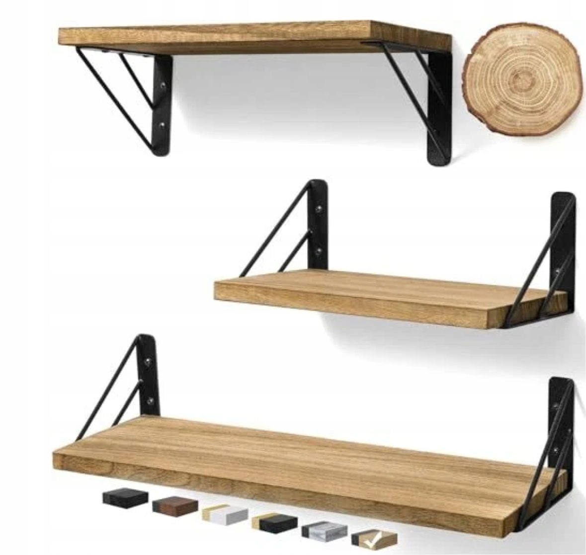 ДЕРЕВЯННЫЕ ПОЛКИ 3 ШТ. НАБОР ПОДВЕСНЫХ ПОЛОК RUSTIC LOFT DIKOM 42X15см