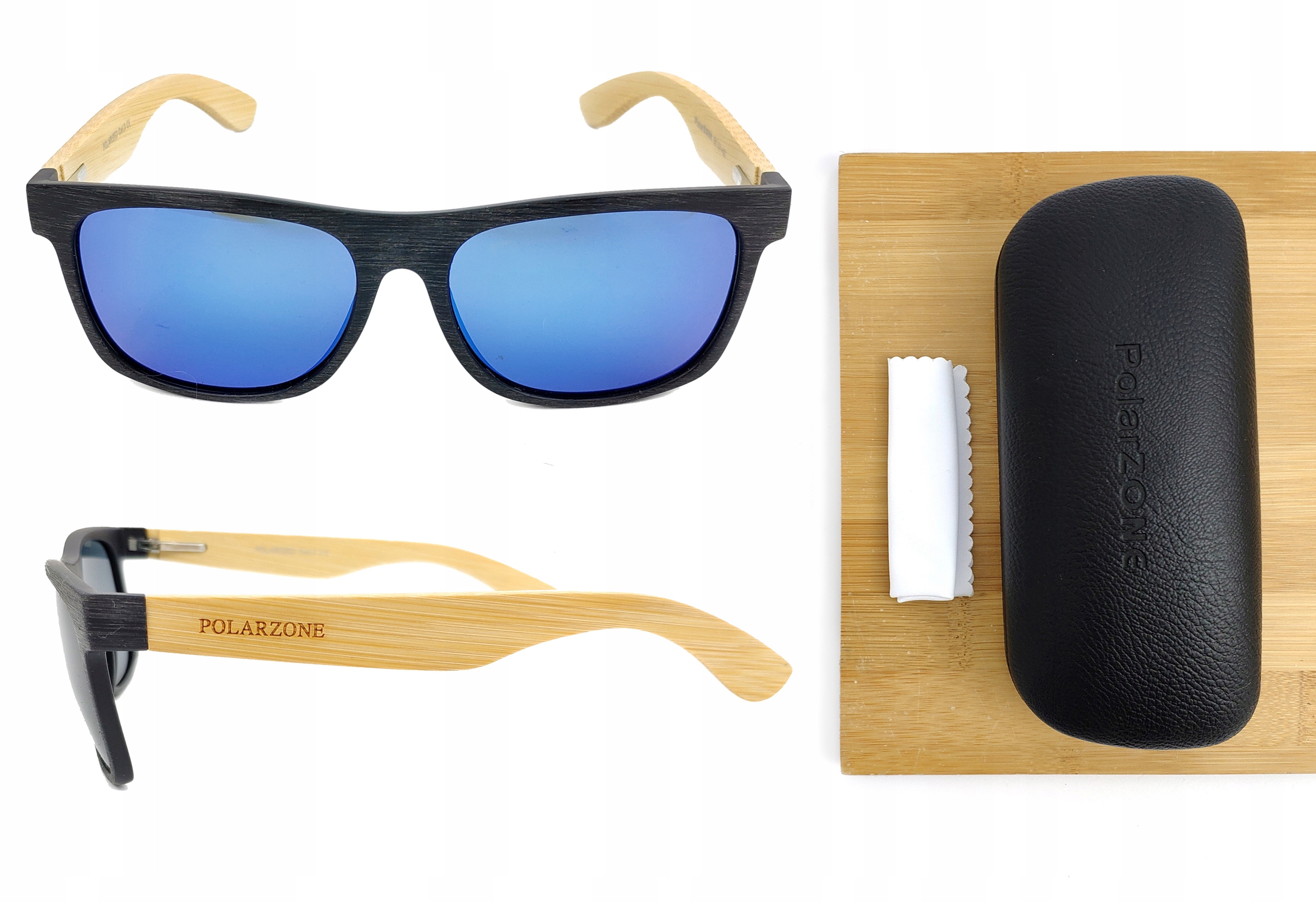 Фирменные очки PolarZONE с зеркальной линзой и бамбуковыми дужками