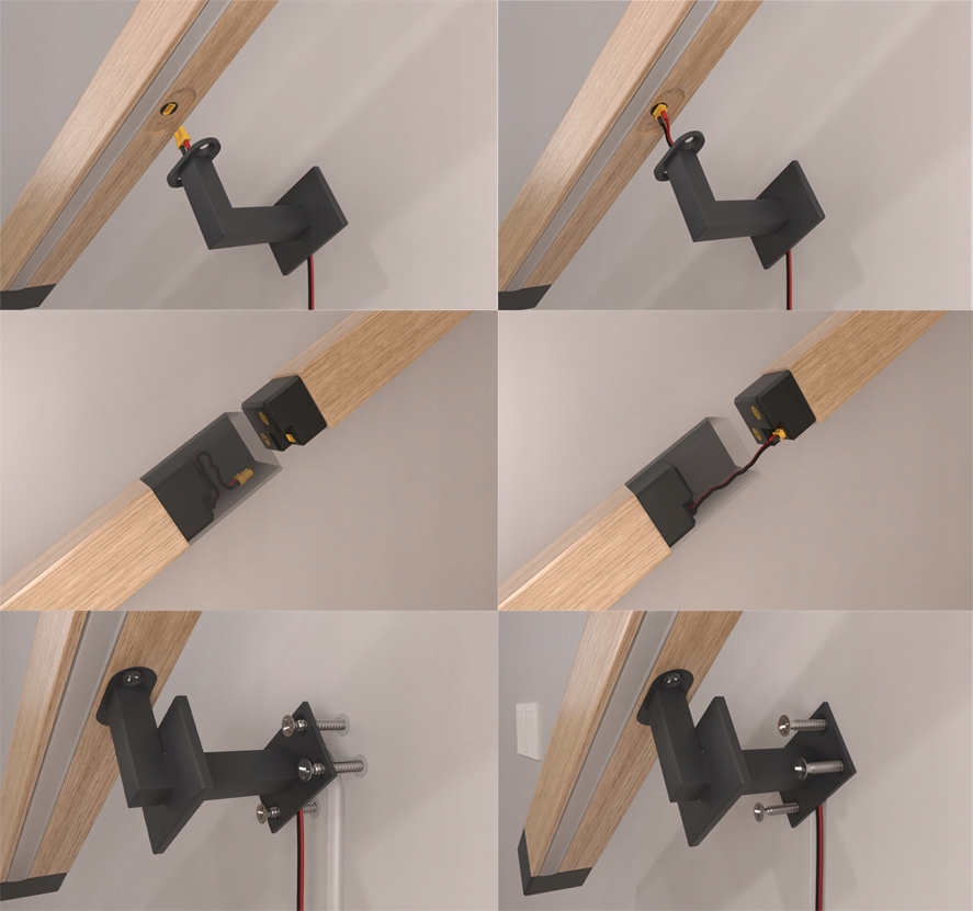 Перила состоят из трех дизайнерских настенных кронштейнов из стали с порошковым покрытием цвета RAL