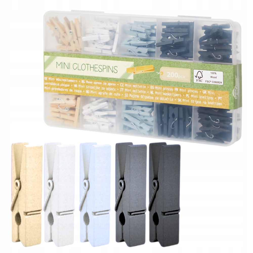 Деревянные пряжки мини -клипы для фотографий для фотографий, установленных 200 пастель