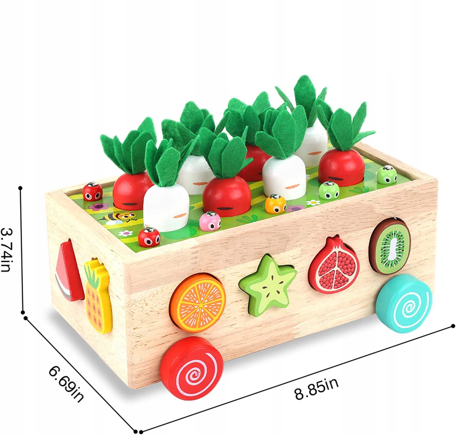 👶🏻【Игрушки для младенцев и малышей】 Красочные фруктовые узоры привлекают внимание ребенка, что позволяет ему легче распознавать цвет и форму. Сбор моркови и магнитные кролики улучшают зрительно-моторную координацию. Автомобильные игры могут развивать у вашего ребенка способность ползать. Это отличная развивающая игрушка для детей!
