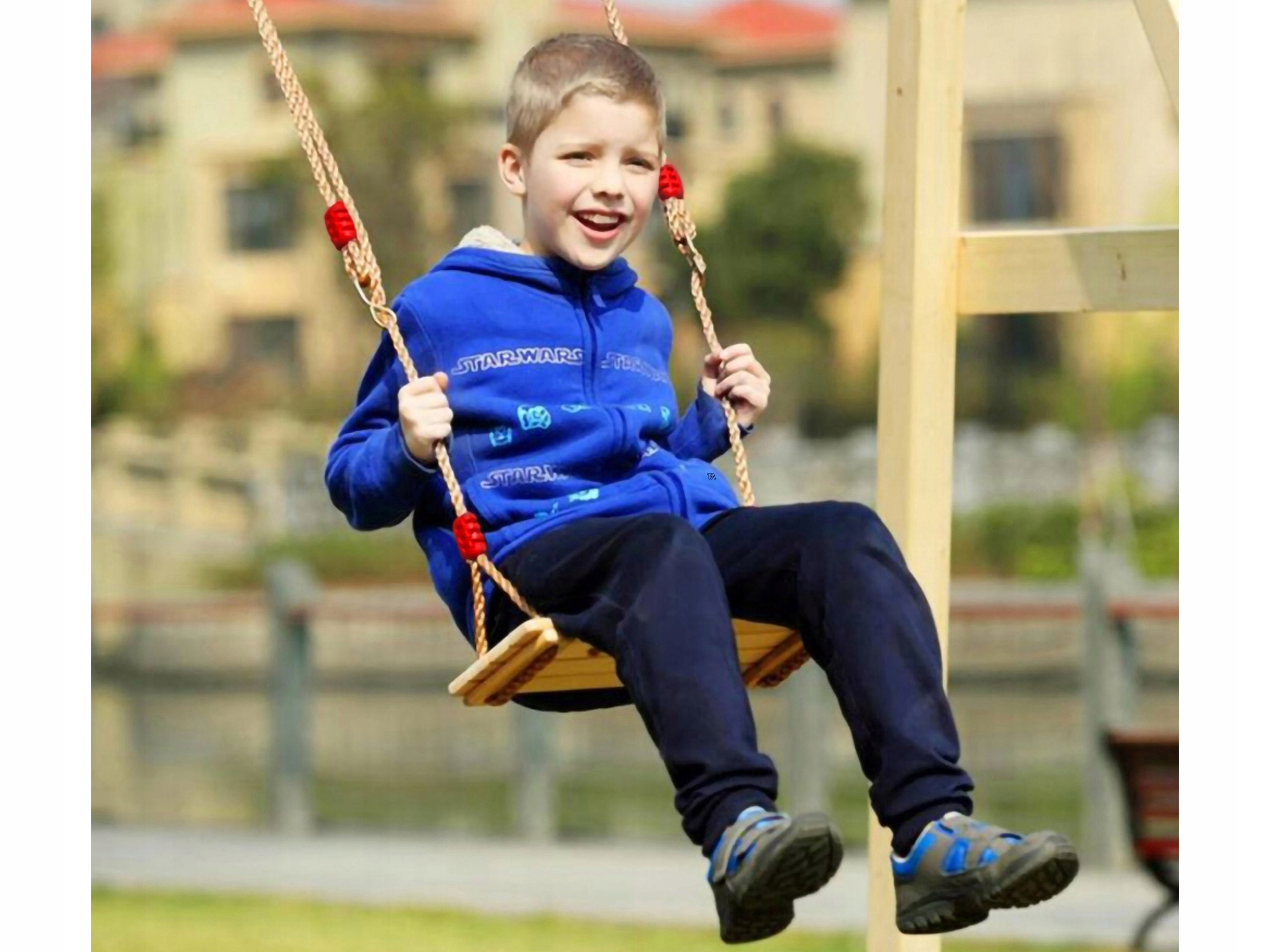 Прочные веревки и прочные металлические элементы крепления гарантируют безопасность ребенка и гарантируют, что качели не сломаются. Светлый цвет древесины приятен для глаз, привлекателен и прекрасно сочетается с темно-коричневым цветом веревок.