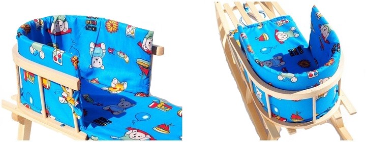 - Сани имеют очень удобный матрас на сиденье и спинке, изготовленный из губки толщиной 2 см. Защищает ребенка от холода и ветра. Матрас в любой момент можно снять для чистки.