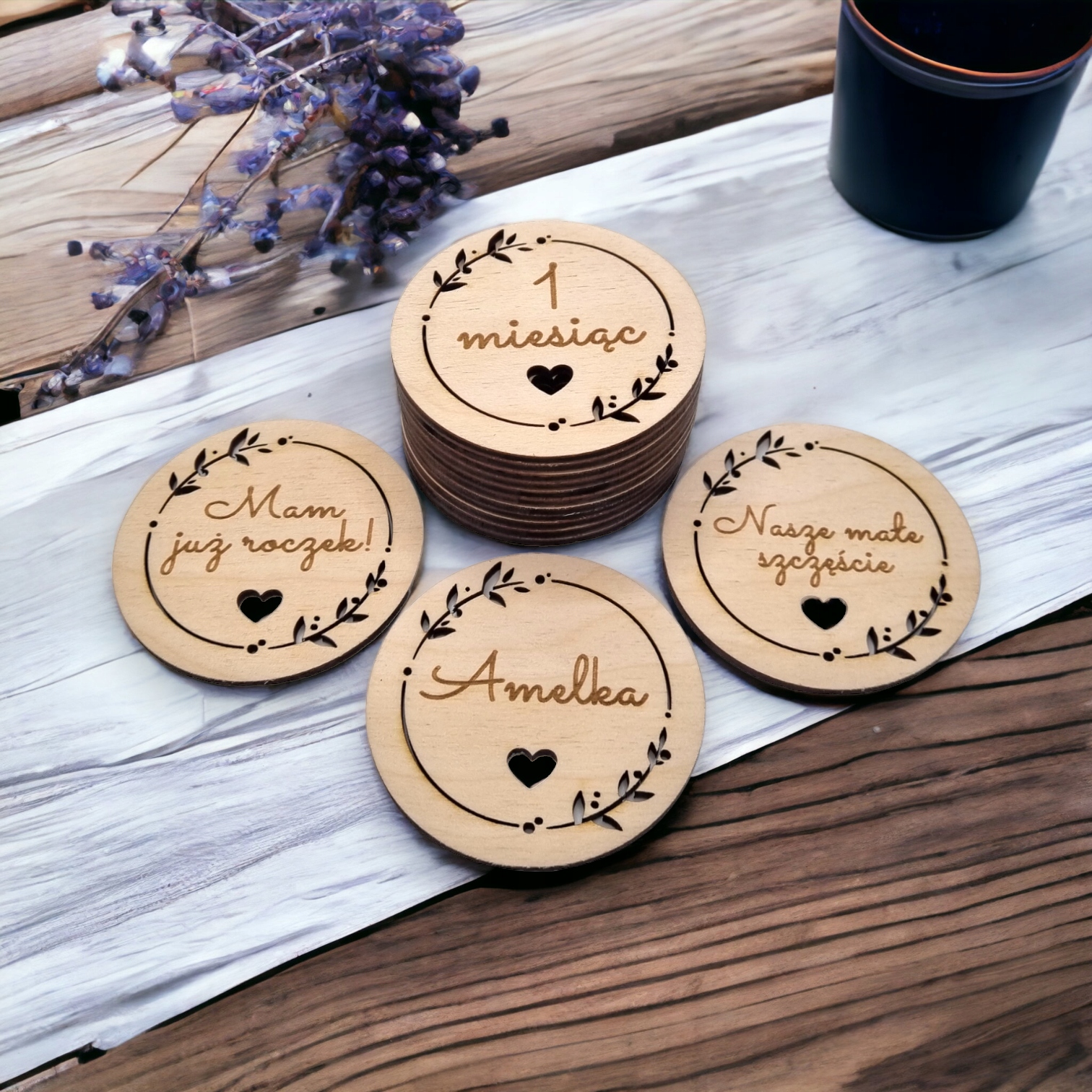 ДЕРЕВЯННЫЕ ТАРЕЛКИ С МЕСЯЦАМИ ДЛЯ ДЕТСКИХ ФОТОГРАФИЙ