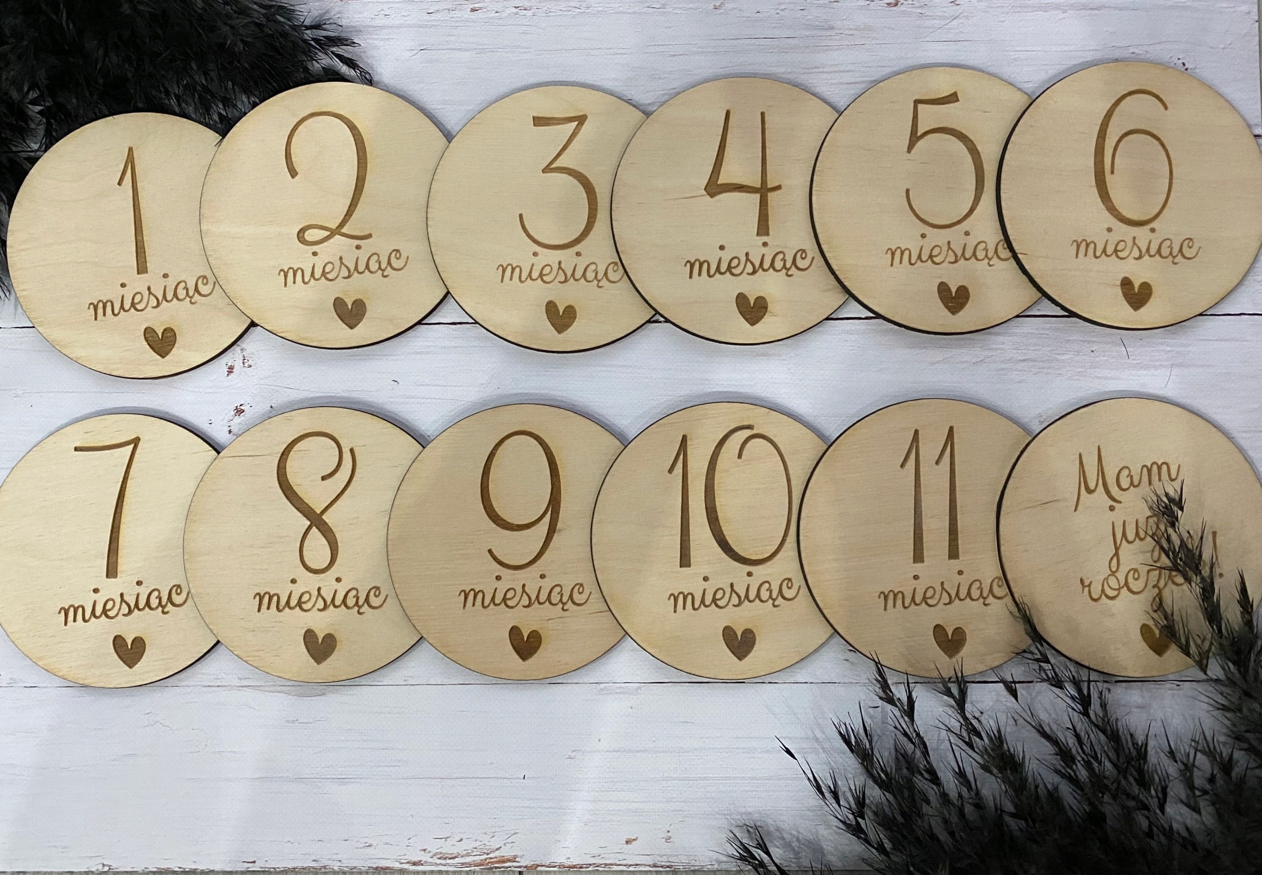 Деревянные таблички-фотокарточки, документирующие первые месяцы жизни вашего малыша. Пластины изготавливаются лазерным методом. Полировка вручную.
