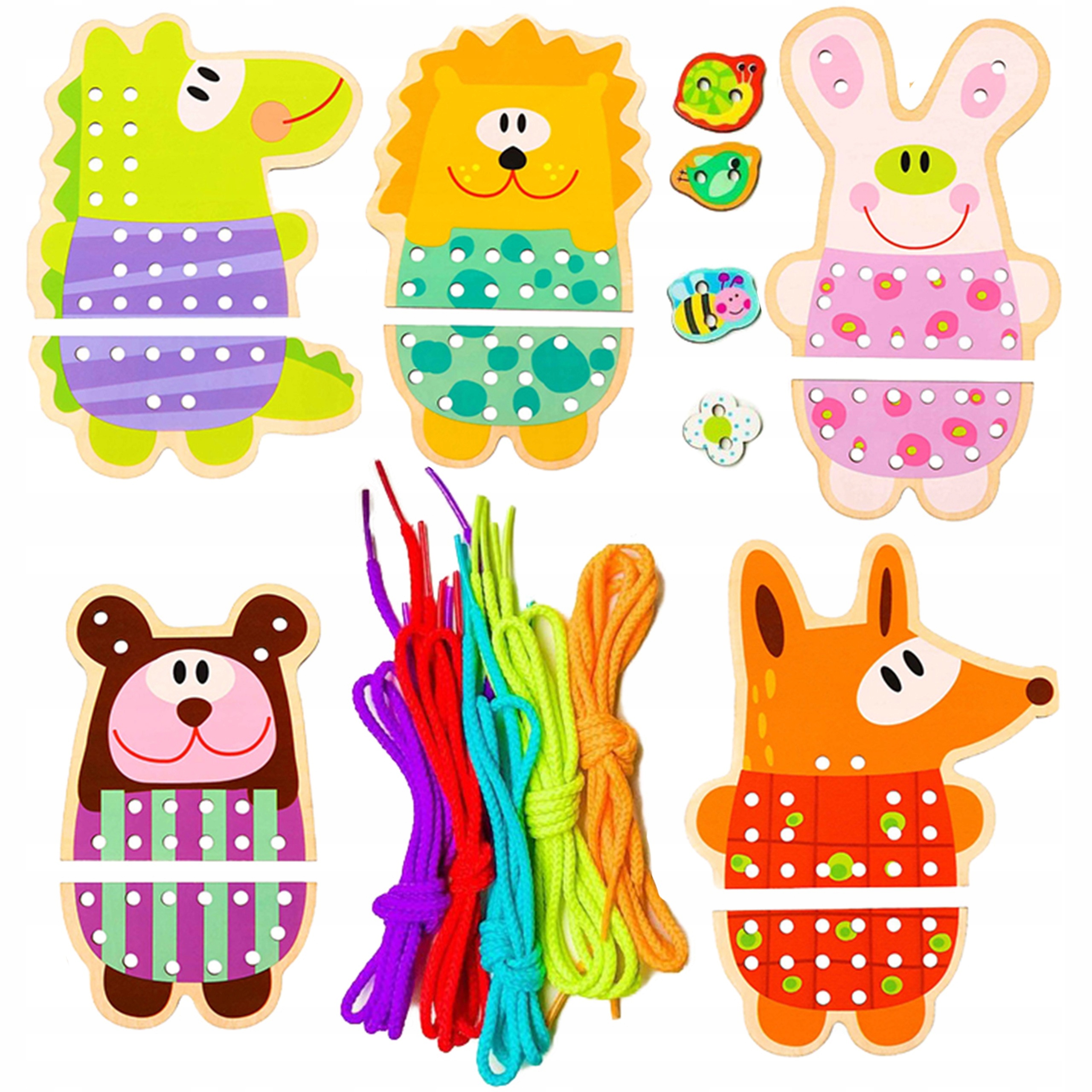 Деревянные зверюшки для резьбы 5в1 от бренда WOOPIE GREEN — очаровательный и познавательный набор, который переносит детей в мир творческой игры. Красочные деревянные зверюшки с отверстиями для резьбы стимулируют детей тренировать ловкость и развивать моторику.Дополнительным элементом является возможность «пришивать» детали к каждому животному - это прекрасная подготовка к обучению письму и работе с мелкими предметами. Набор изготовлен из качественного дерева и расписан нетоксичными красками, поэтому совершенно безопасен для детей.Идеальное предложение как для маленьких ручек, так и для больших. воображение!