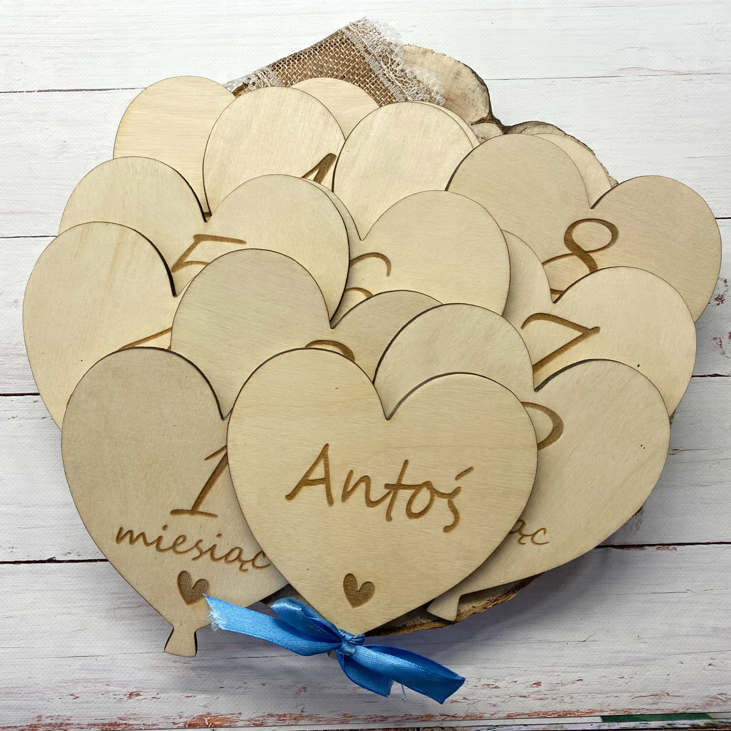 ДЕРЕВЯННЫЕ ТАРЕЛКИ ДЕТСКИЕ ФОТОКАРТОЧКИ в форме СЕРДЦА на джутовой веревке
