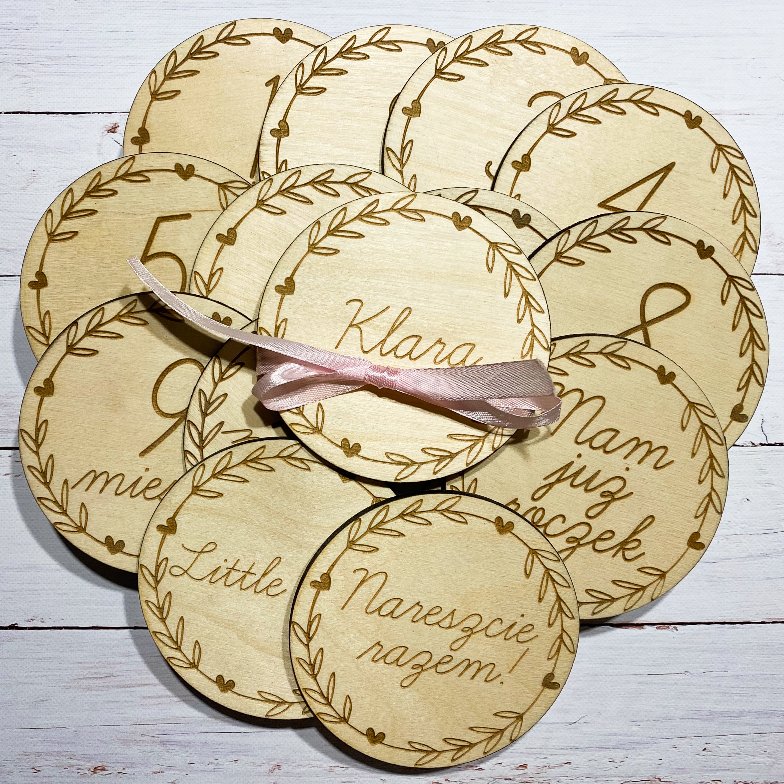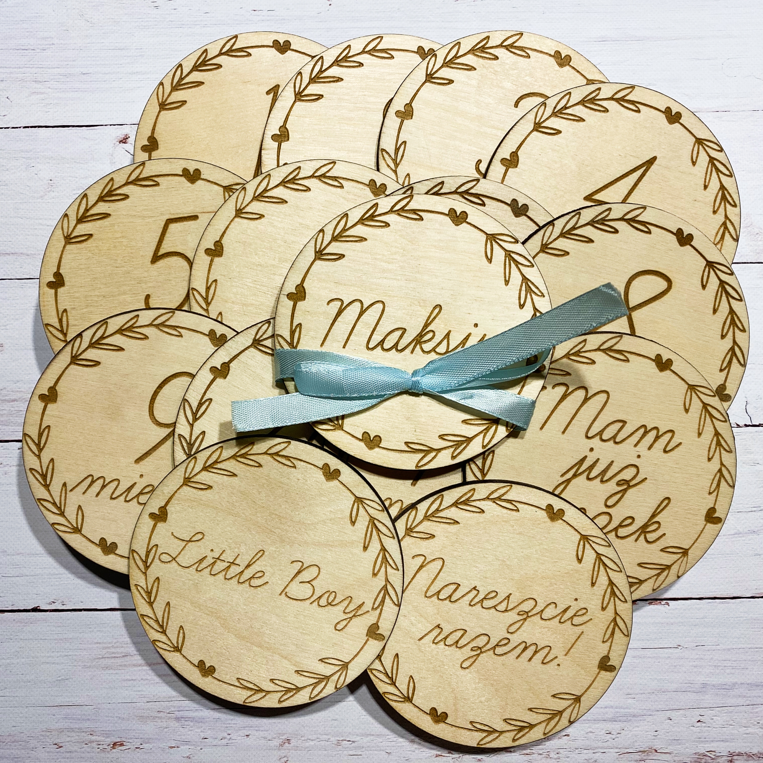 Деревянные таблички-фотокарточки, документирующие первые месяцы жизни вашего малыша. Пластины изготавливаются лазерным методом. Полировка вручную.