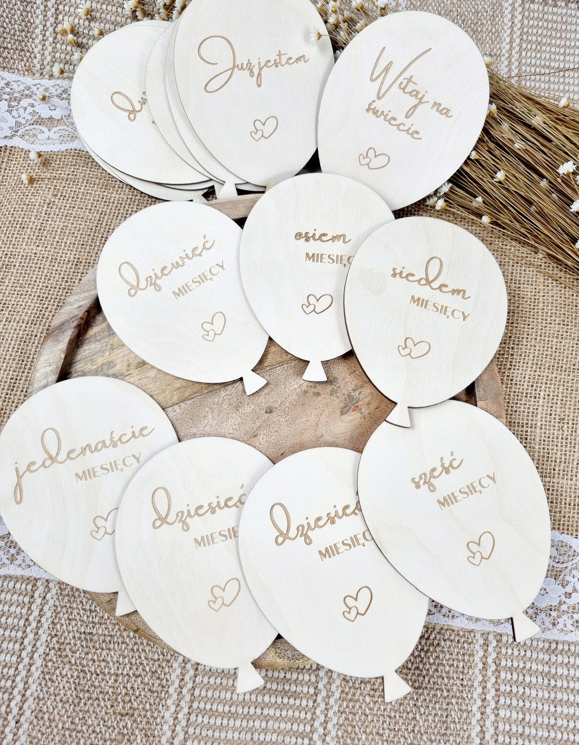 Уникальные персонализированные тарелки в форме воздушного шара со специальной гравировкой. Это идеальный способ увековечить первые 12 месяцев жизни вашего ребенка.
